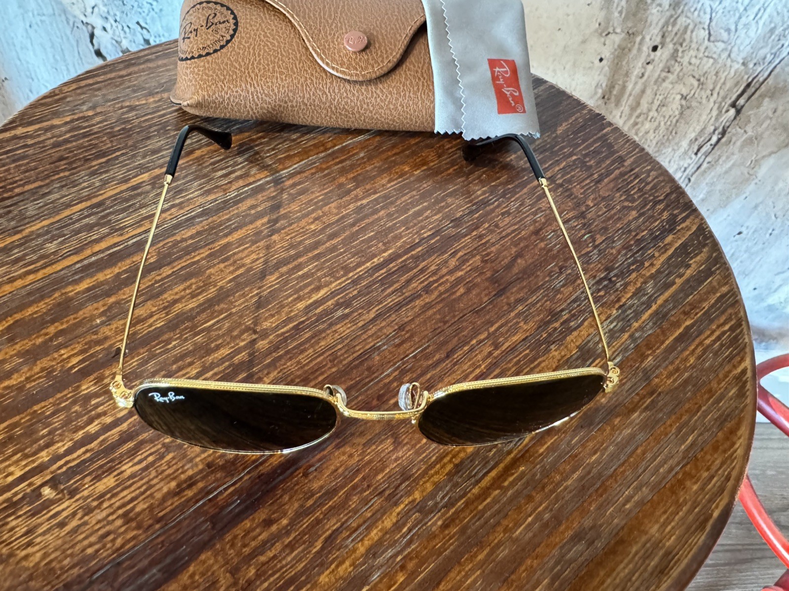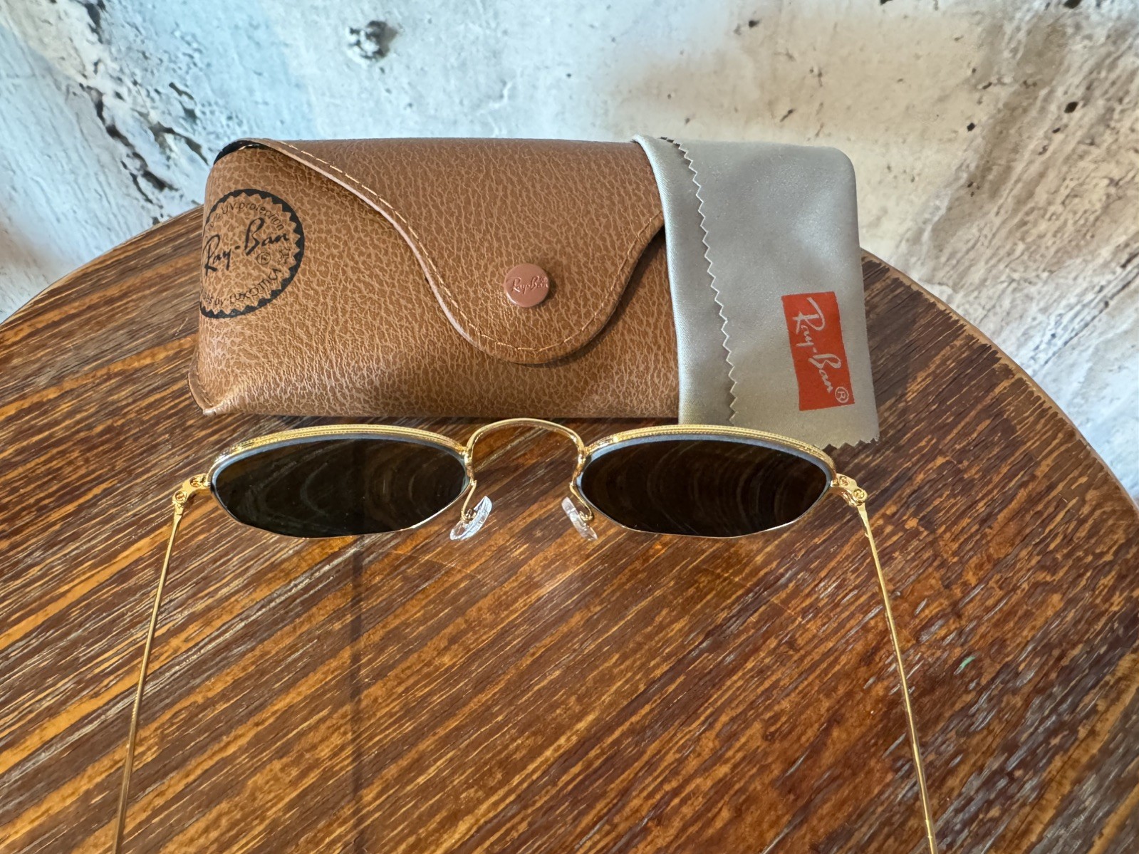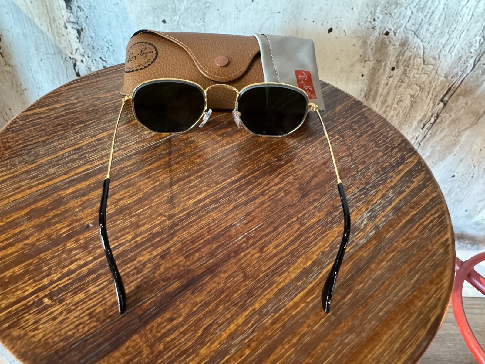 как выглядит Ray-Ban Unisex Hexagonal Sunglasses Gold Frame, Green Lens фото