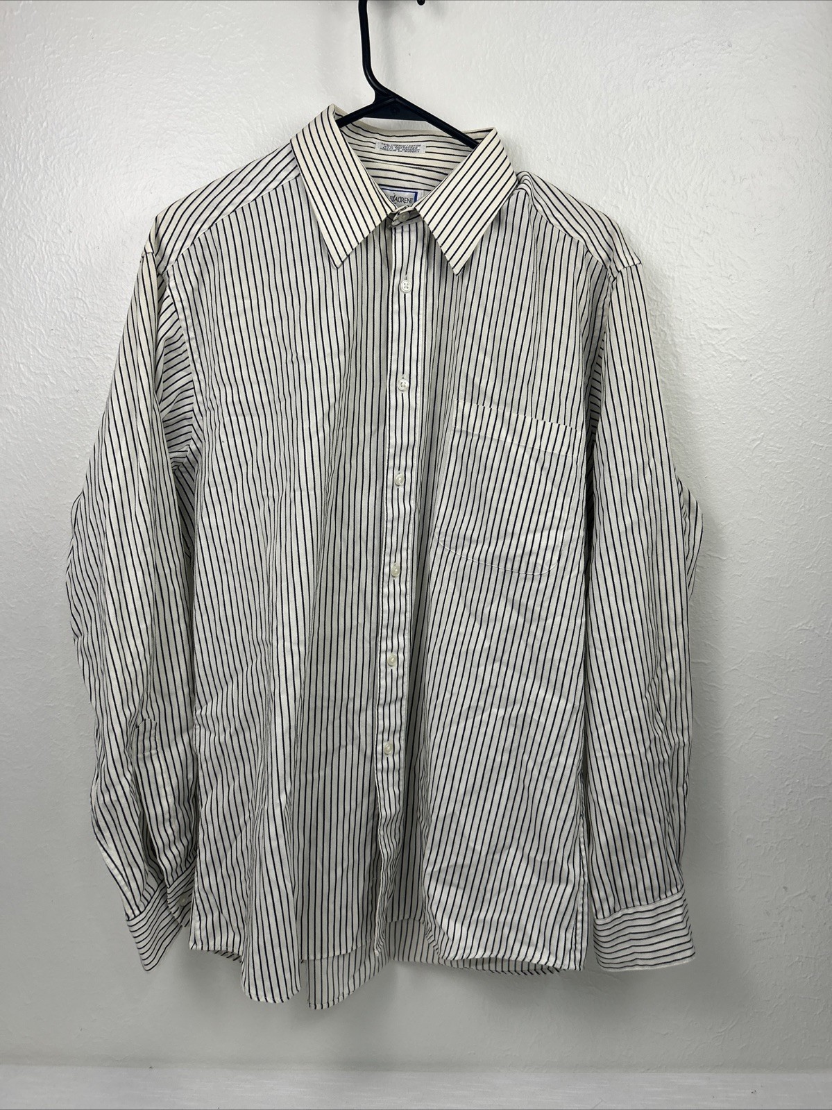 Yves Saint Laurent Button Up Dress Shirt 16 34-35 Striped Black White Designer