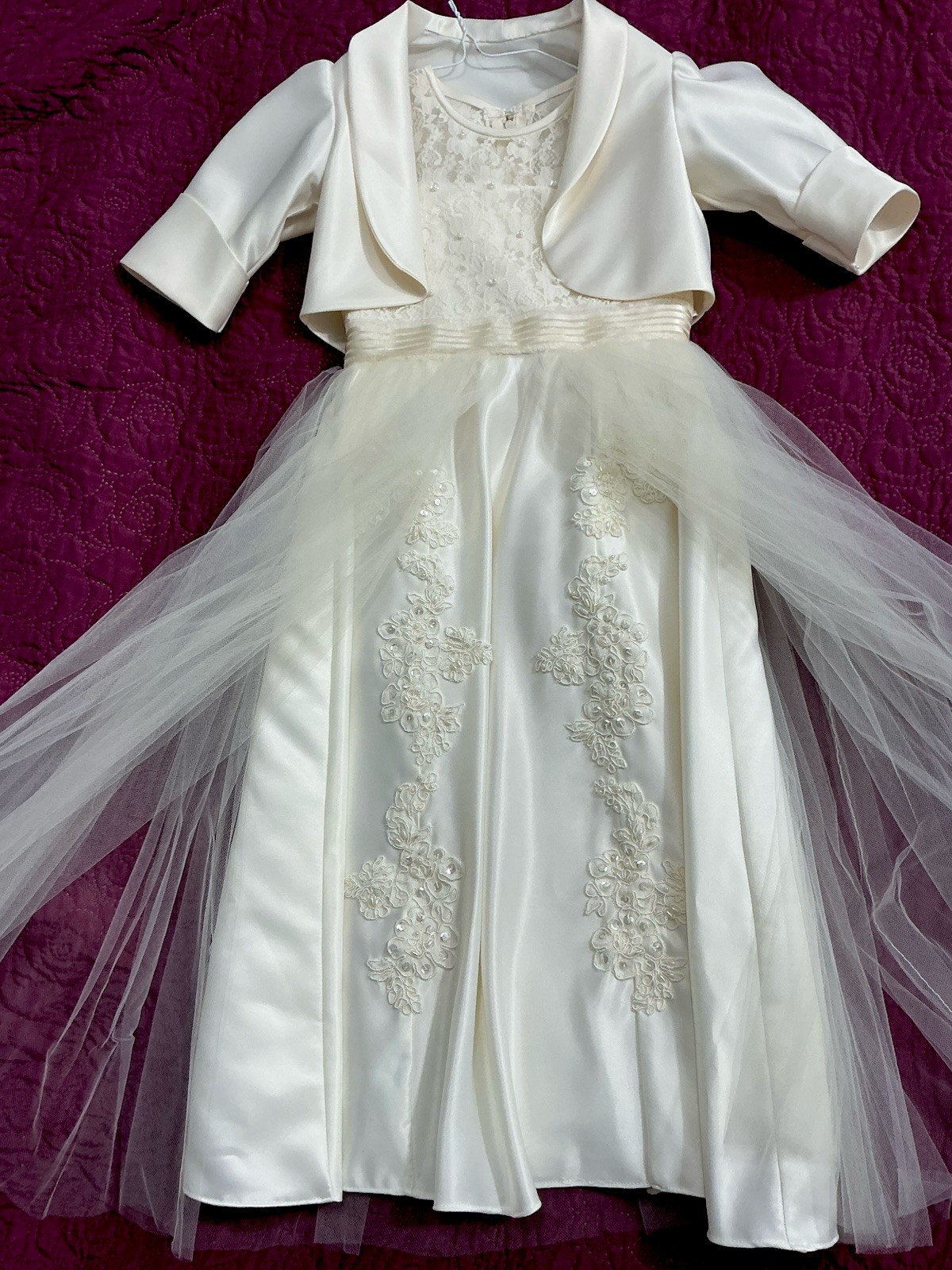 White Lace Tulle Formal Dress with Jacket and Ribbon Waist First Comuni n