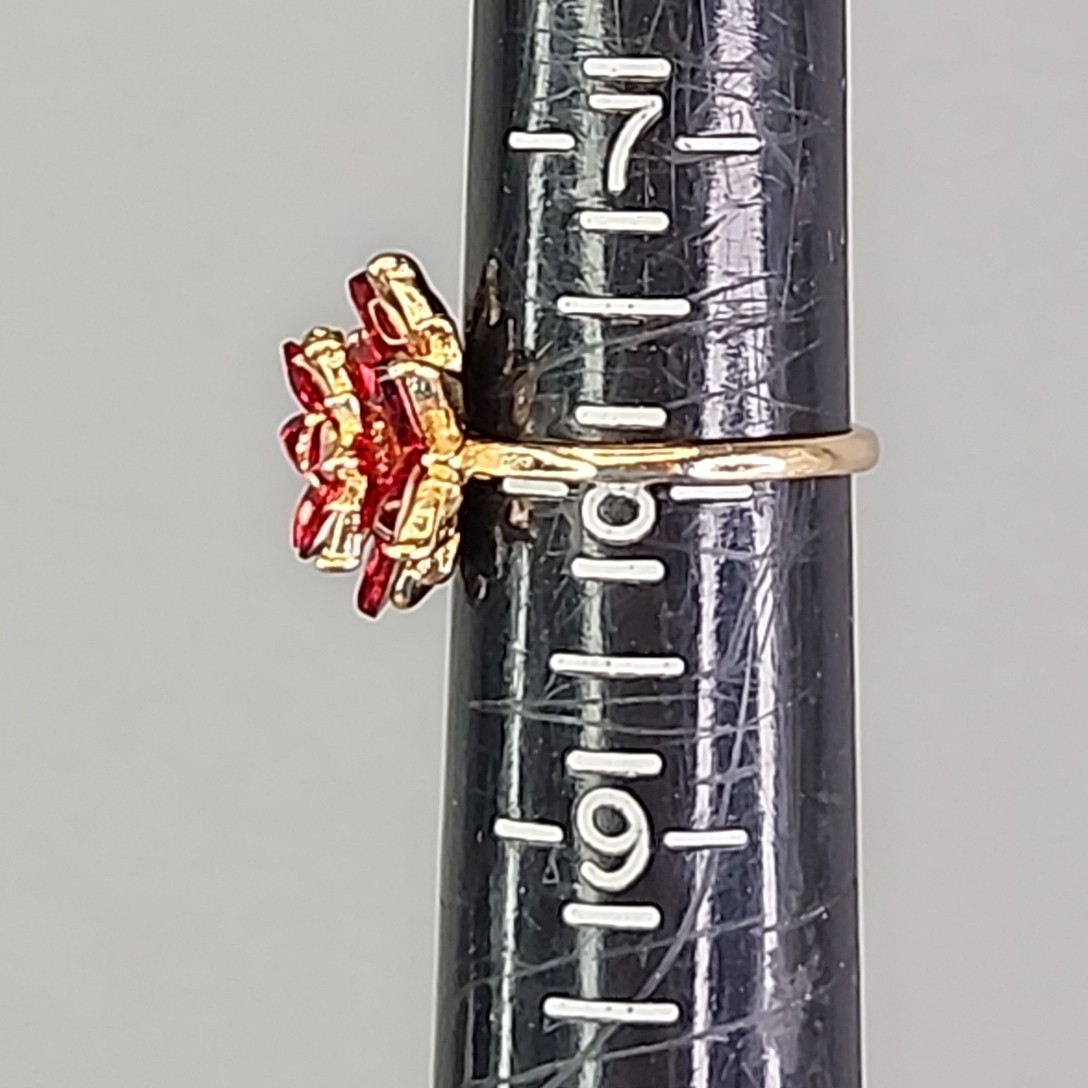 как выглядит Glass Flower Ring Red Layered Gold Tone 7.75 фото