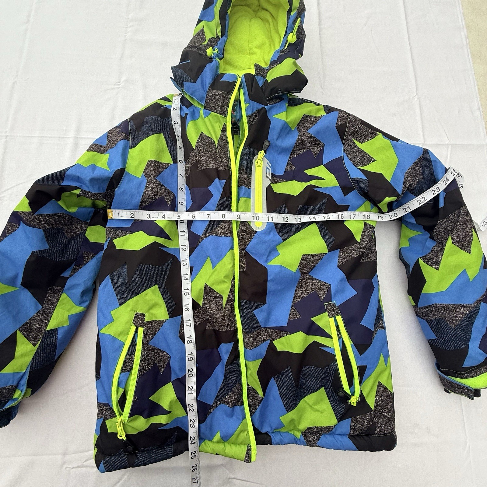 Kuluoxing Doubl Wear Youth Ski Jacket Size 16 Blue Green Camo Hooded