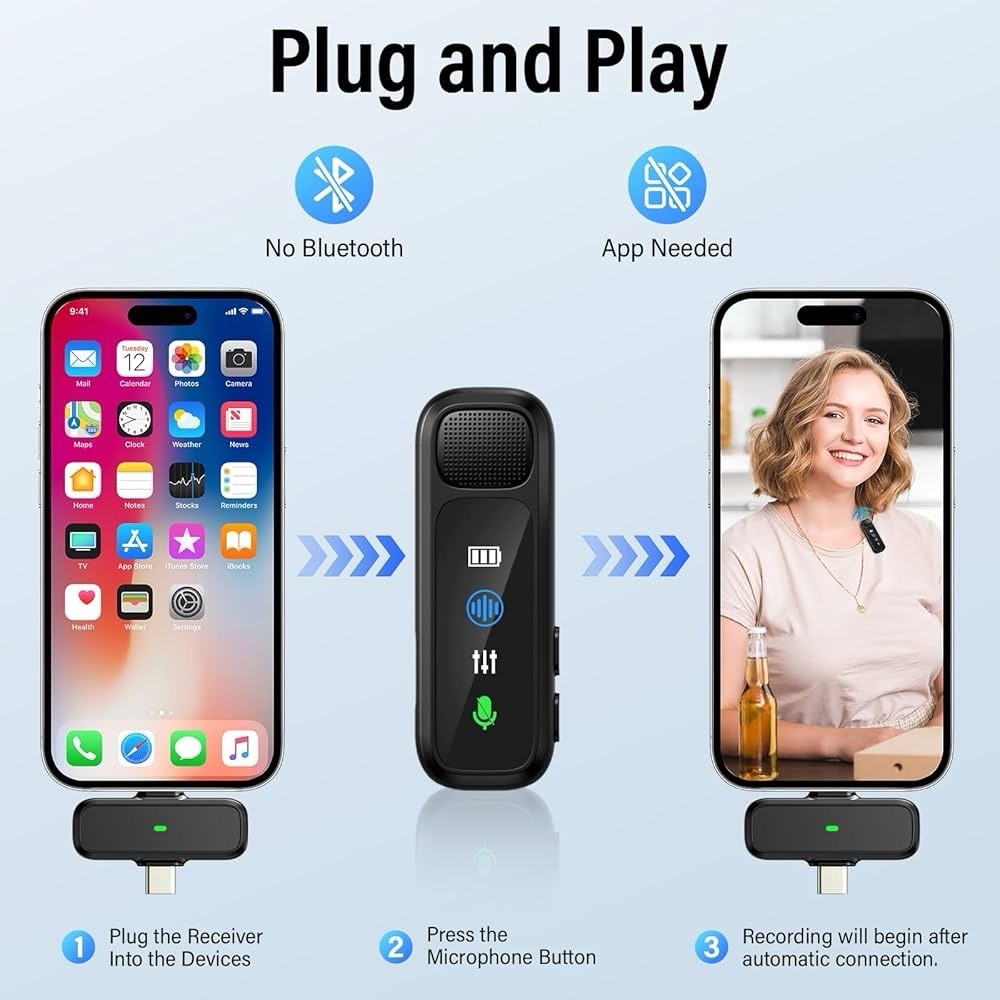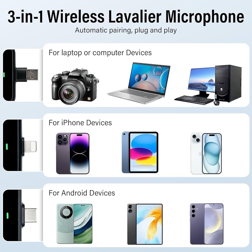 3 in 1 Wireless Lavalier Microphone for Android/Tablets/PC Intelligent Noise ...