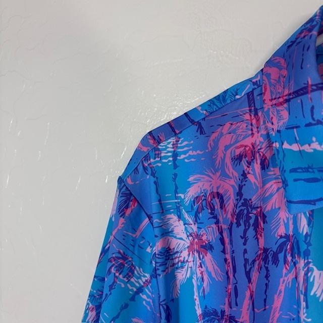как выглядит Birdie Bound Polo Shirt Mens Medium Blue Tropical Palm Golf Stretch Performance фото