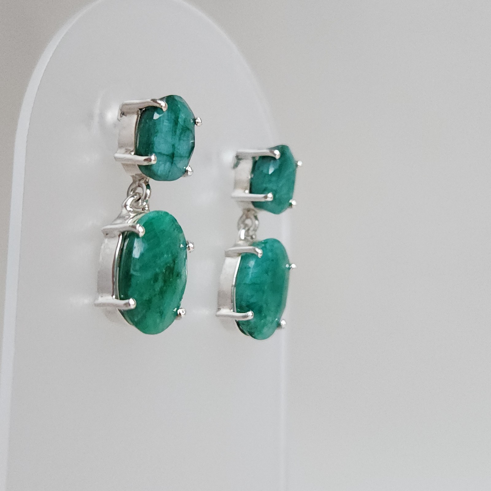 как выглядит Sterling Silver Green Emerald Double Oval Drop Earrings Gift Boxed фото