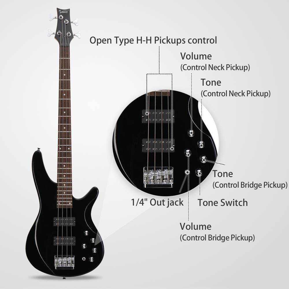 Glarry 44 Electric Bass Guitar 4 Strings H-H Pickup for Student With Carry Bag