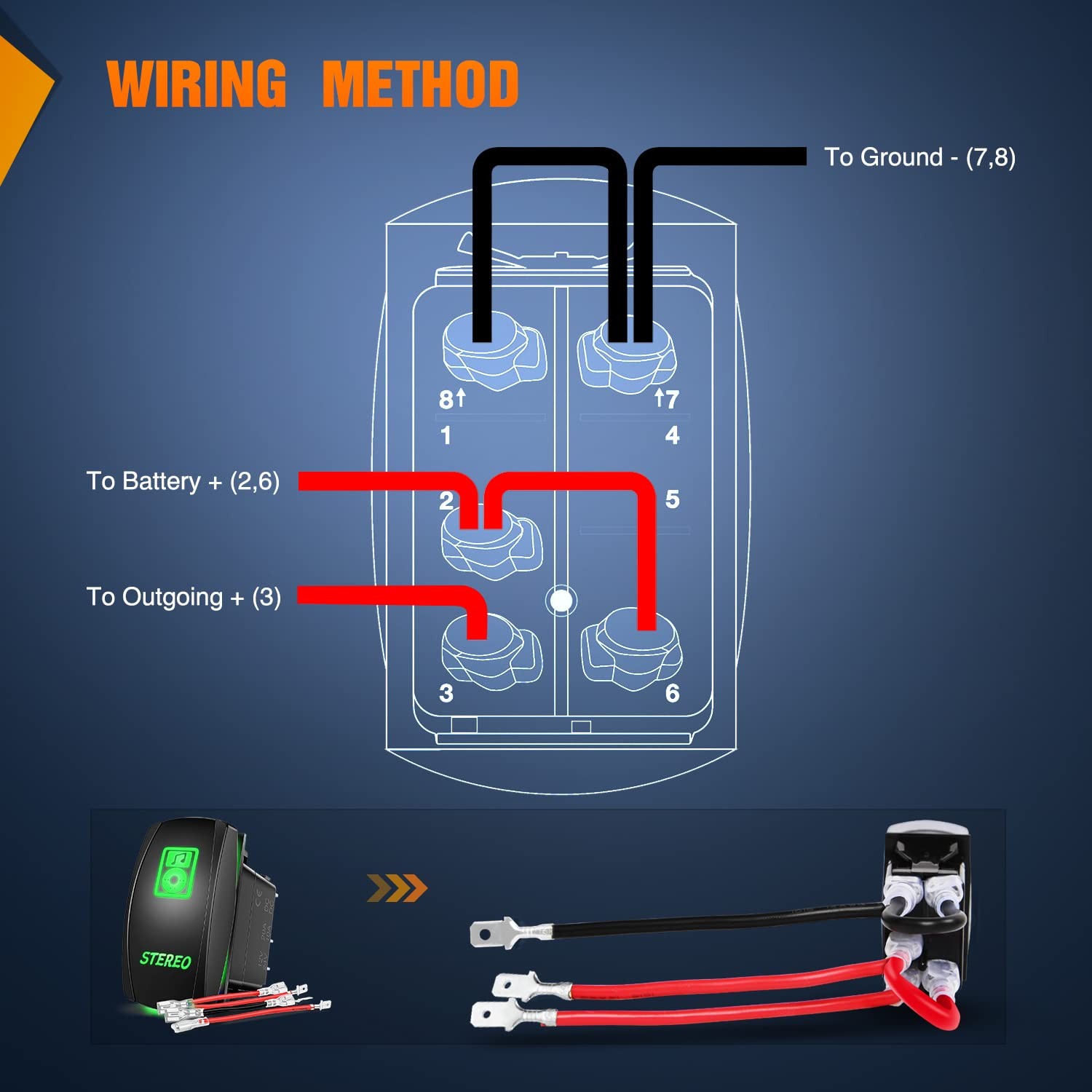 Stereo Rocker Switch LED Light Bar 5Pin Laser On Off 20A 12V 10A 24V Green SPST