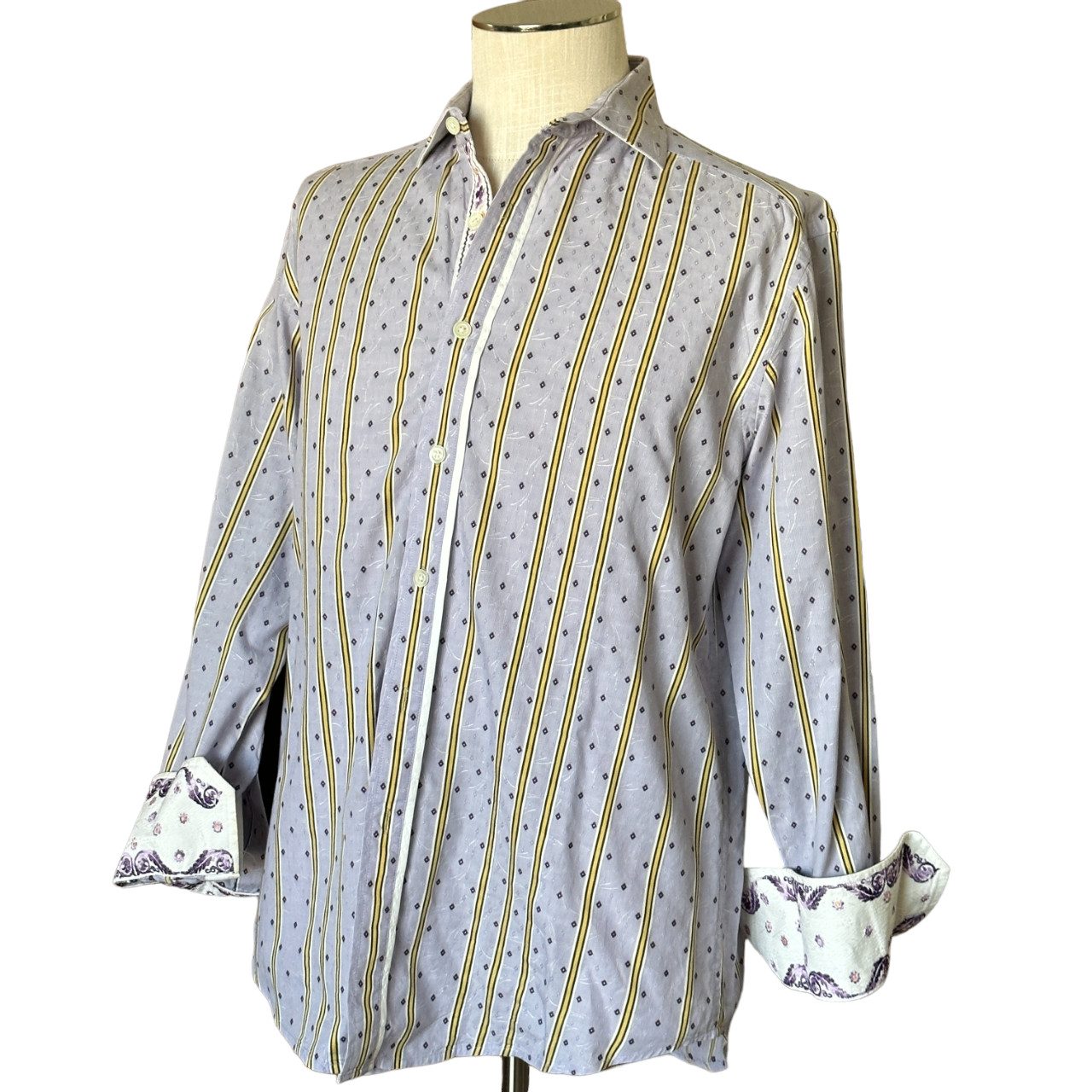 как выглядит Robert Graham - Size Medium - Stripe - Flip Cuff - Long Sleeve Button Shirt фото