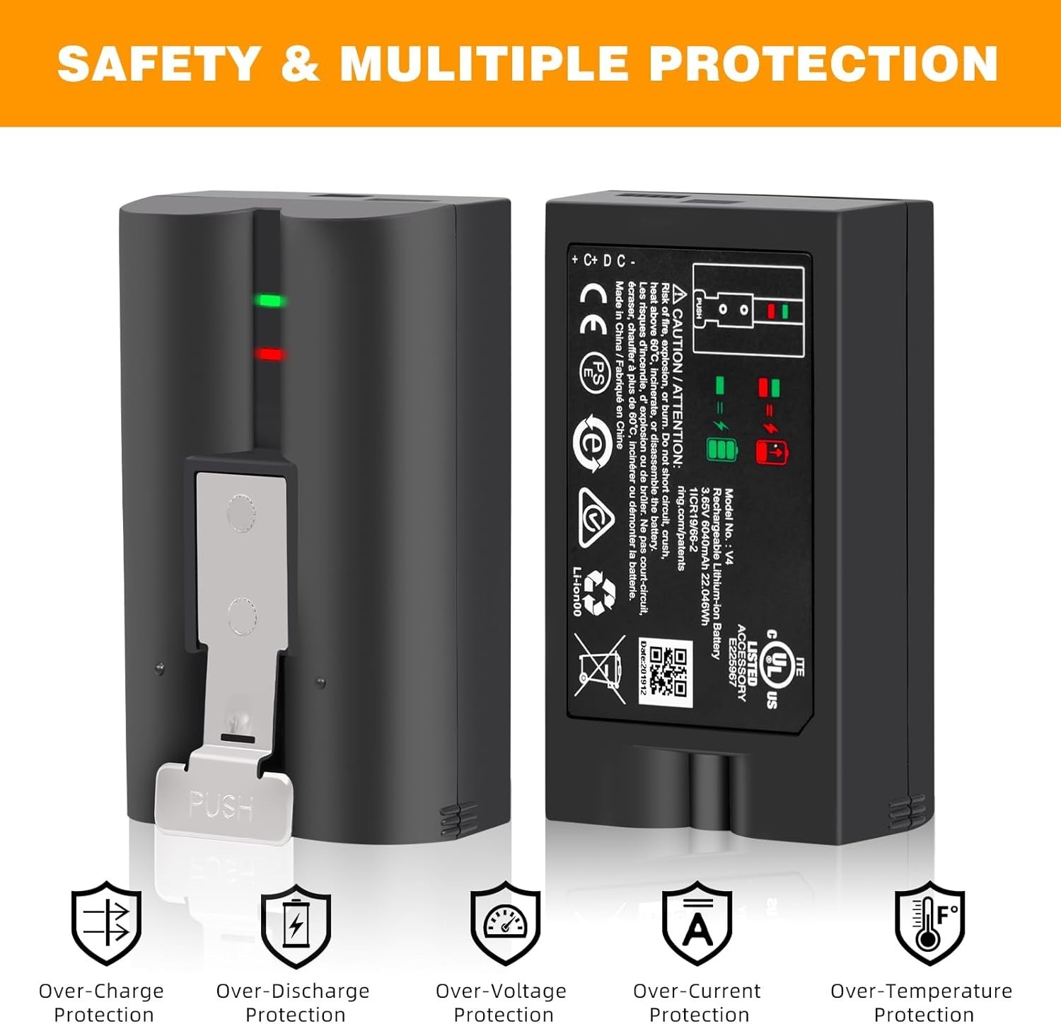 2 Pack Ring V4 Battery For Ring Camera Doorbell Solar Floodligh 2/3/4/3 plus US