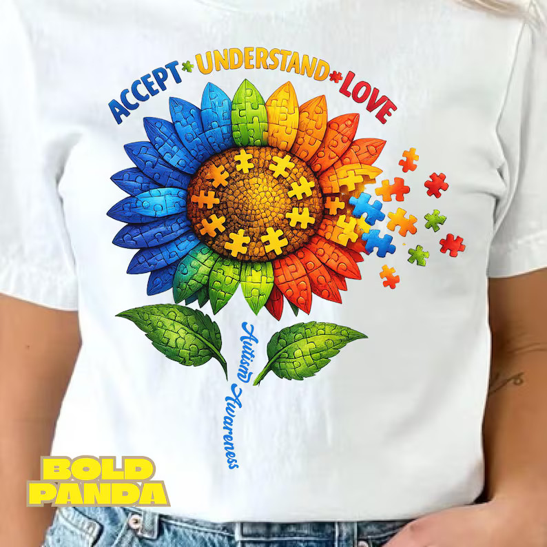 Autism Awareness Sunflower Accept Understand Love Support 2D T-shirt