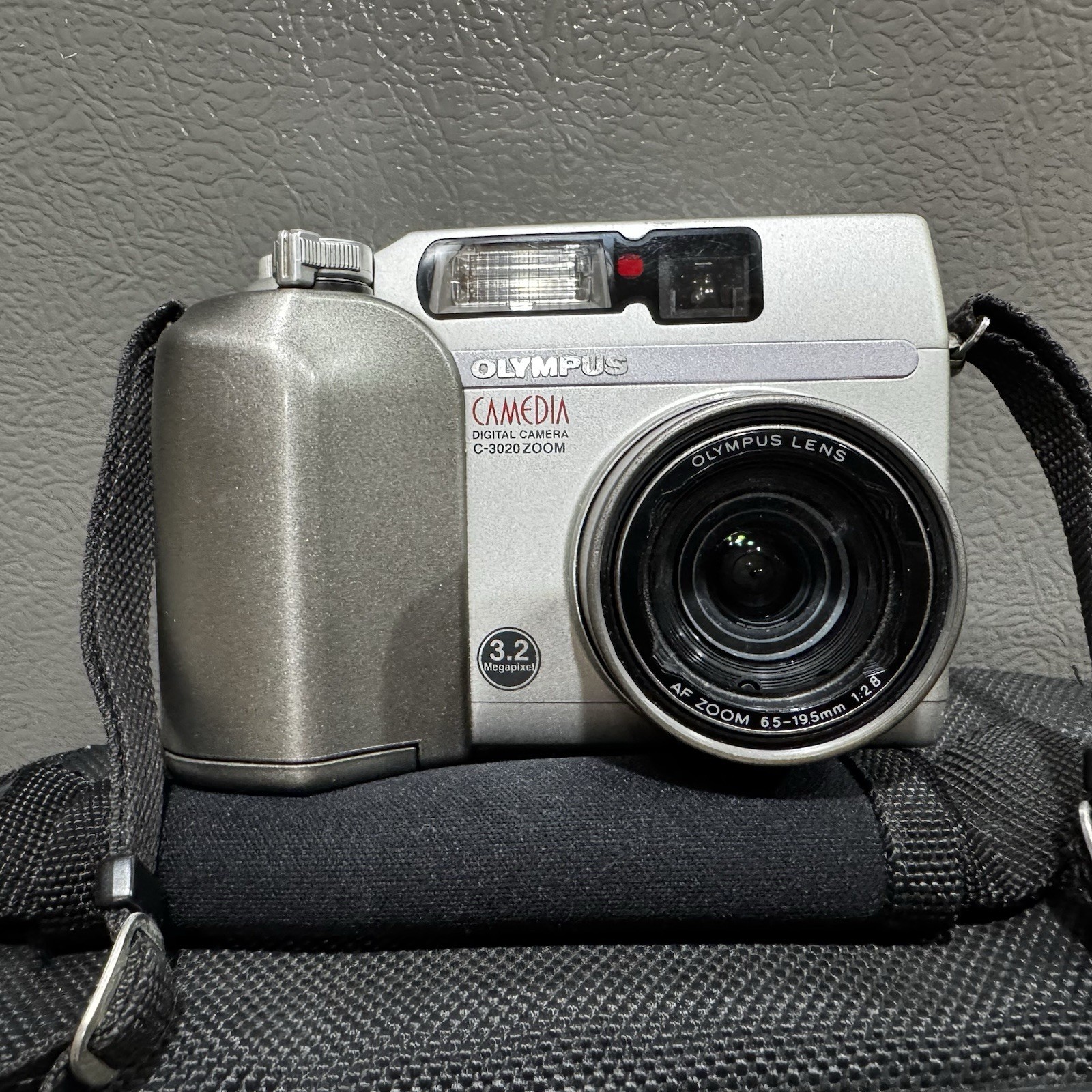 Vtg Olympus C-3020 Zoom 3.2MP Silver Digital Camera Case Tested Works