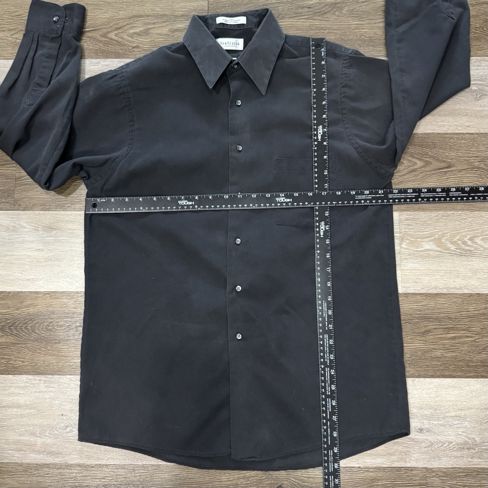 как выглядит Van Heusen Pique Dress Shirt Men s Sz 16 32/33 Charcoal Black Long Sleeve EUC фото