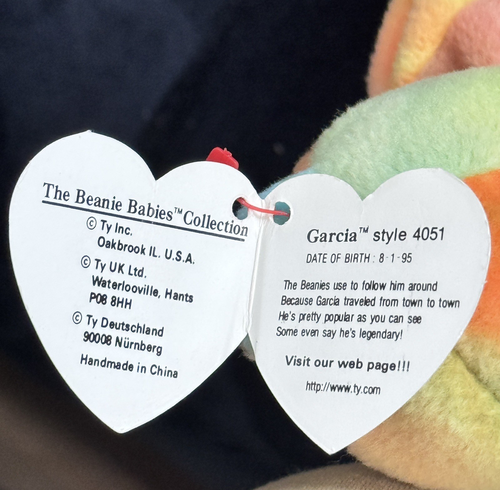 Ty Vintage 1995 GARCIA Beanie Baby, PVC, MWMT, Tag Errors, Most Beautiful Colors