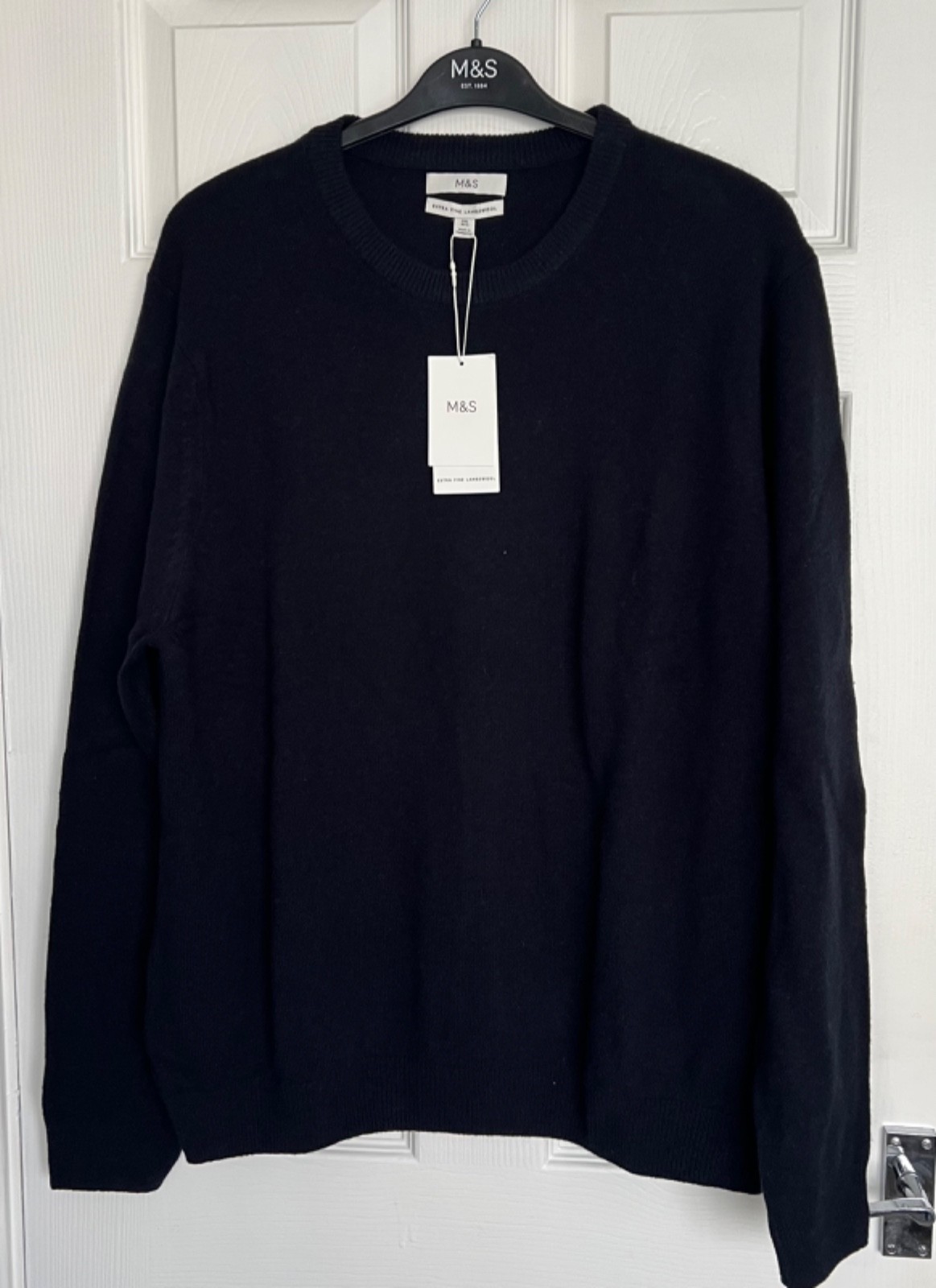 NEW M S Mens Dark Navy Pure Extra Fine Lambswool Crew Neck Jumper Size 2XL