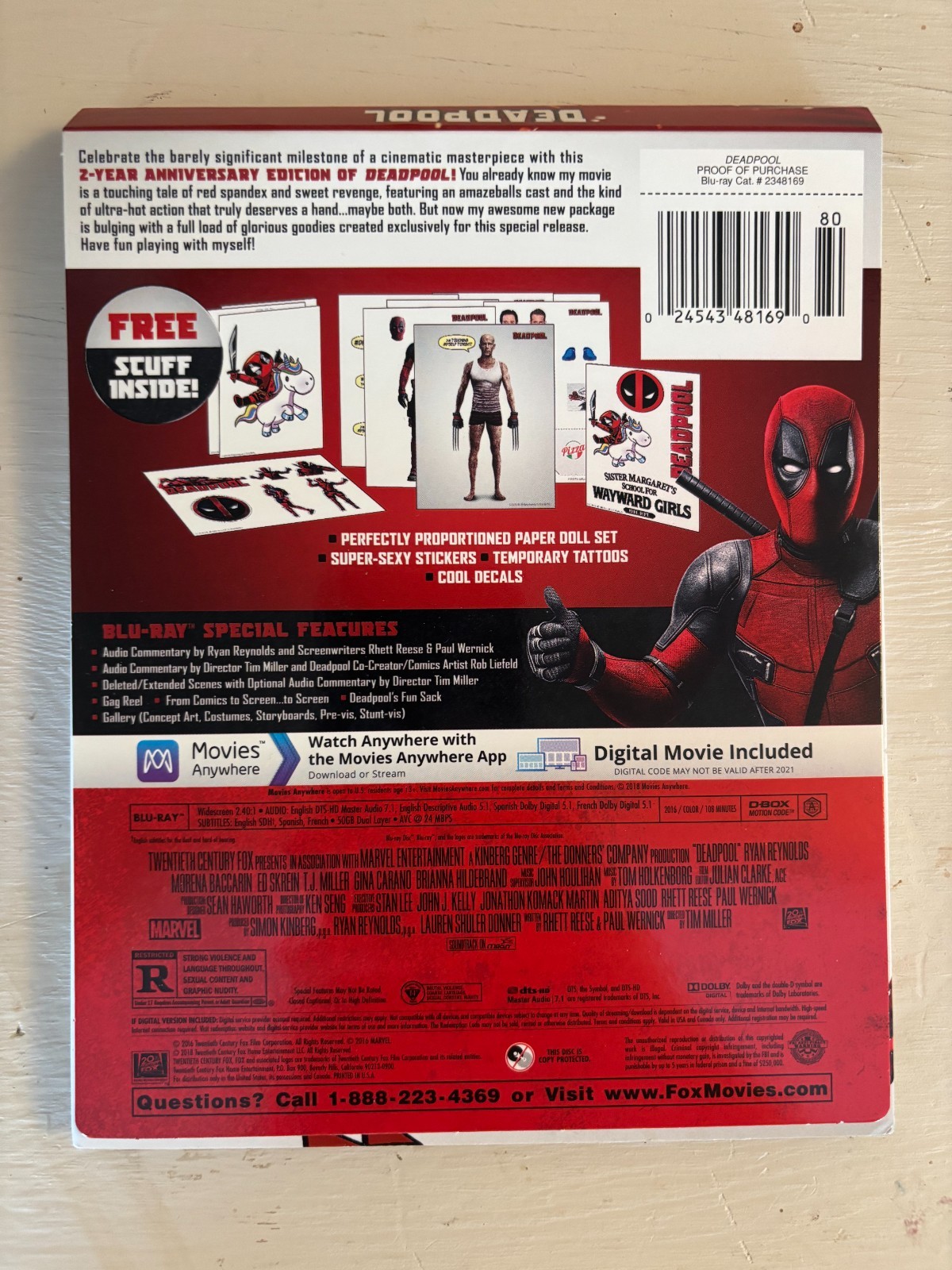 Deadpool Blu-ray Disc, 2018, 2 Year Anniversary Edition