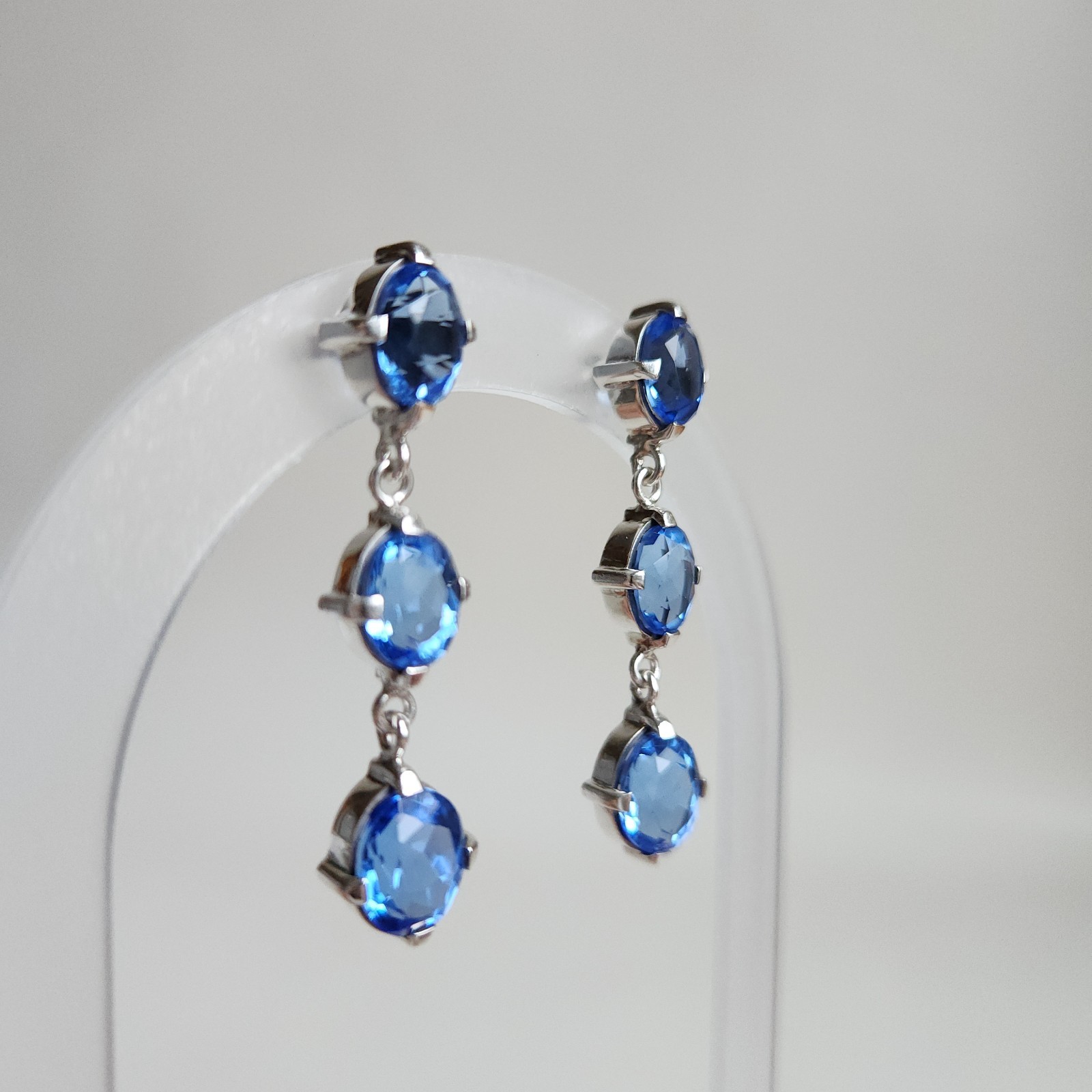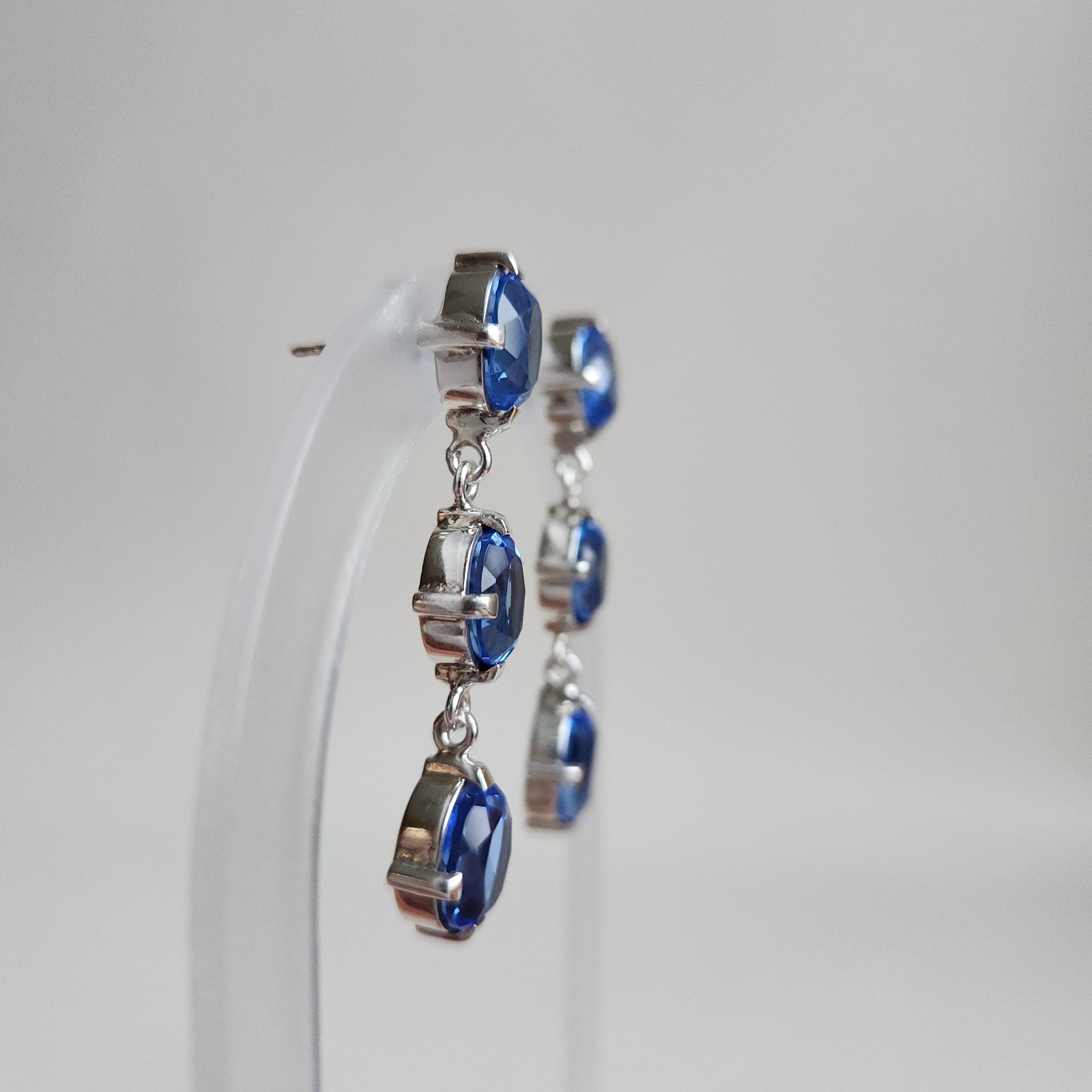 как выглядит Sterling Silver Sapphire Blue Crystal Drop Earrings 2" Triple Dangle 925 фото