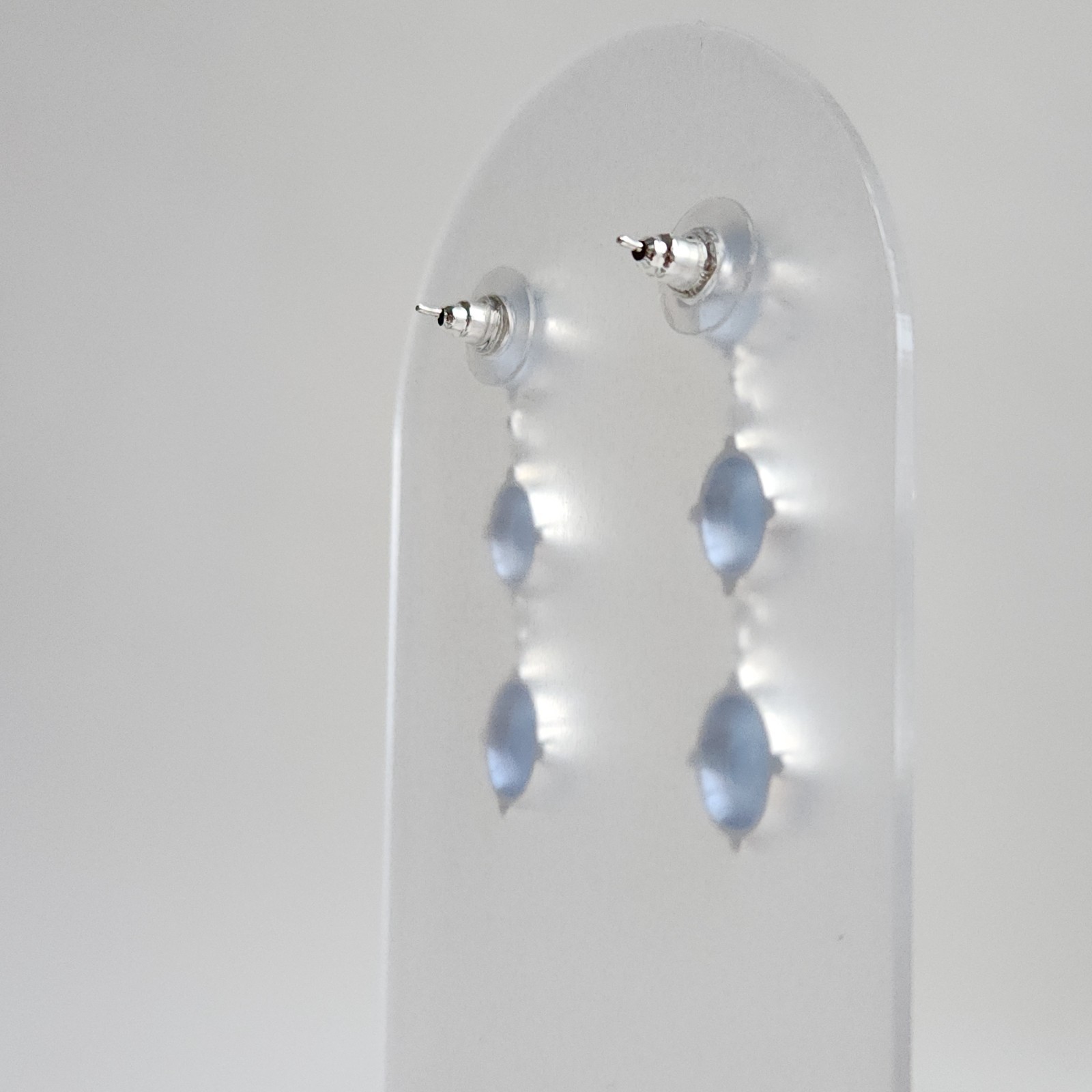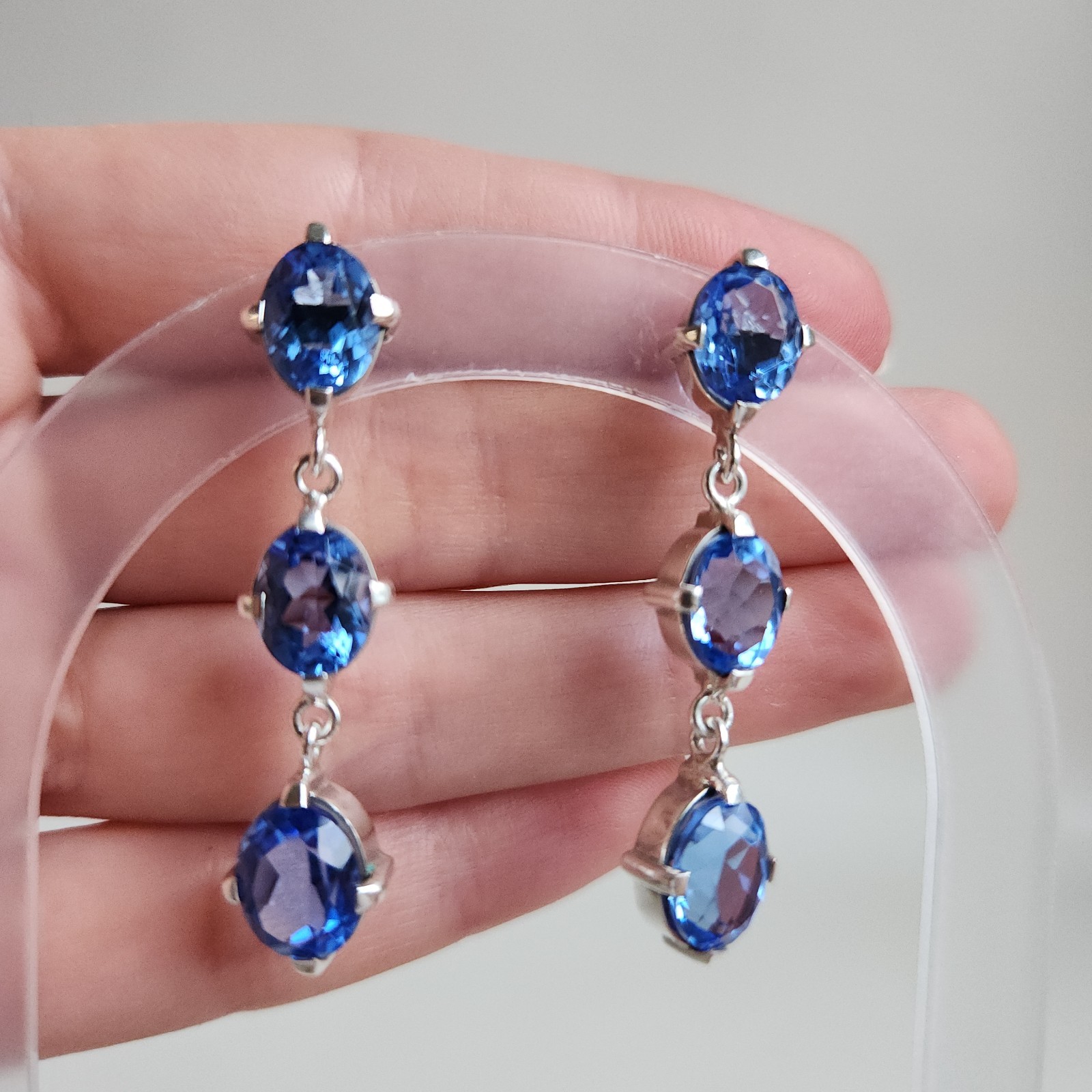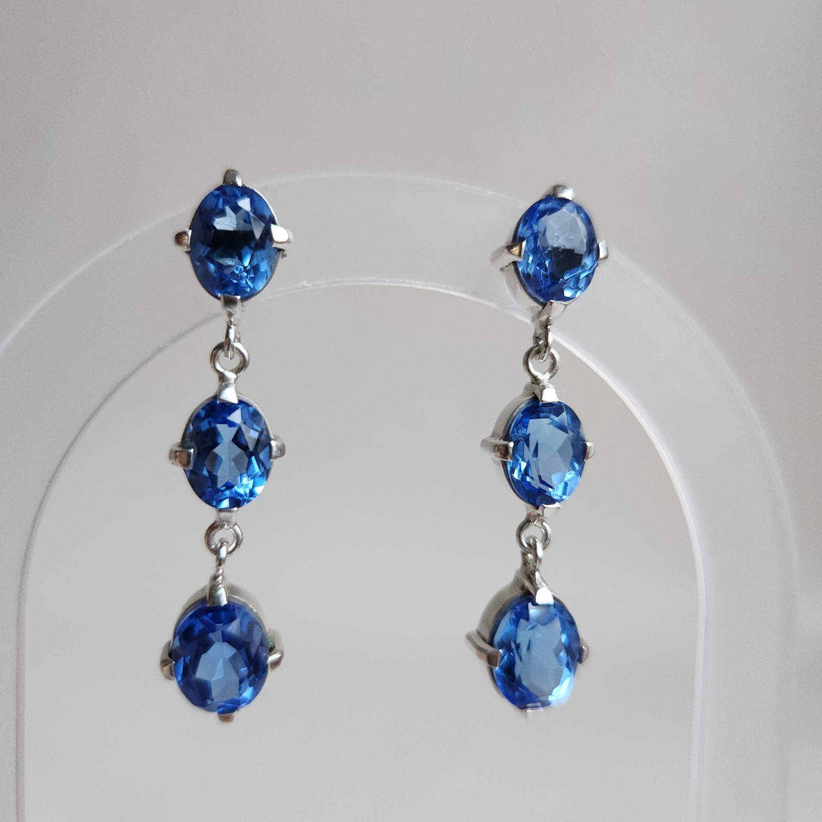 Sterling Silver Sapphire Blue Crystal Drop Earrings 2 Triple Dangle 925