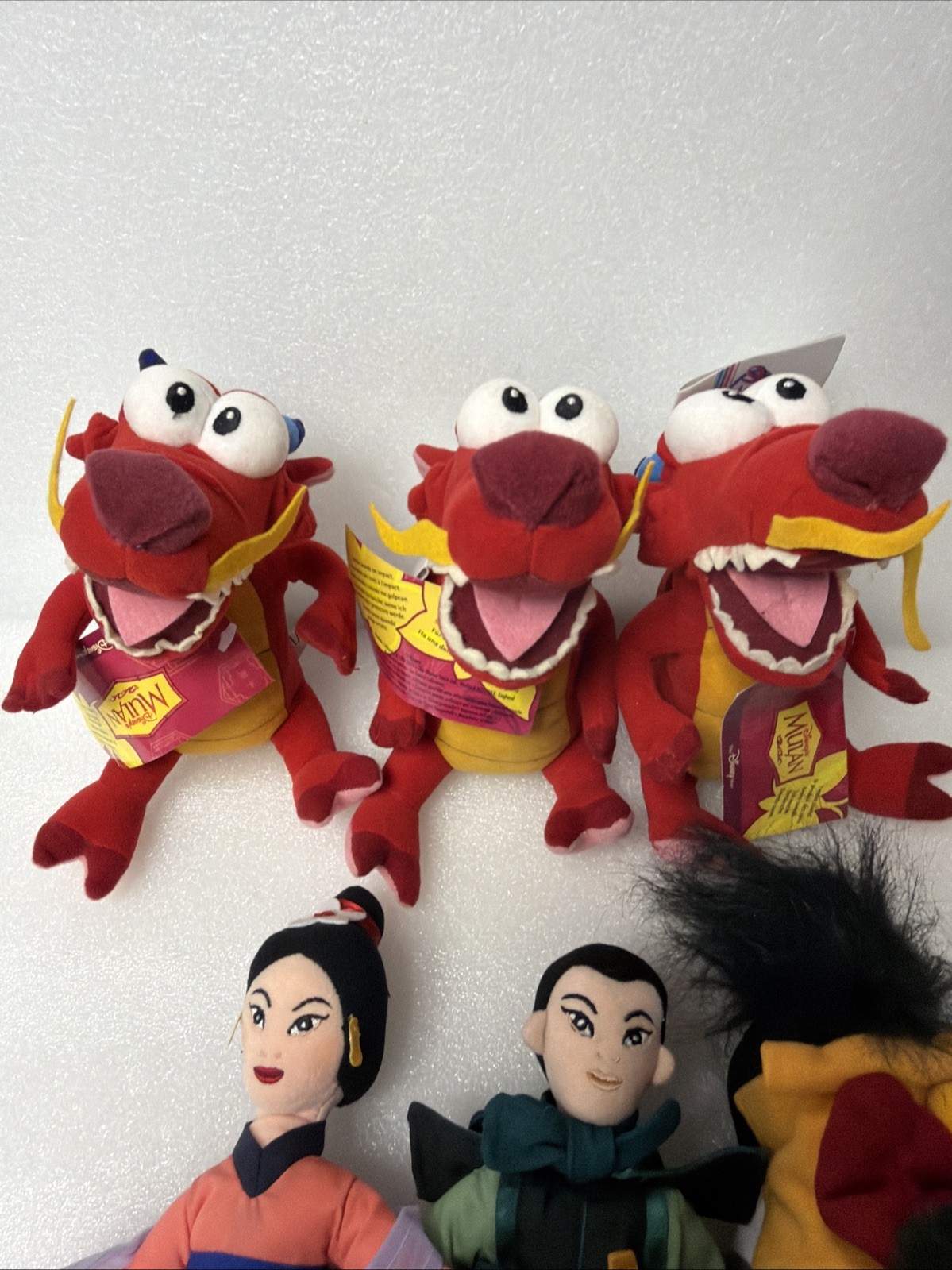 Disney Store Mulan Bean Plush Lot Of 9 Vintage NWT Mushu Khan Brother Cricket