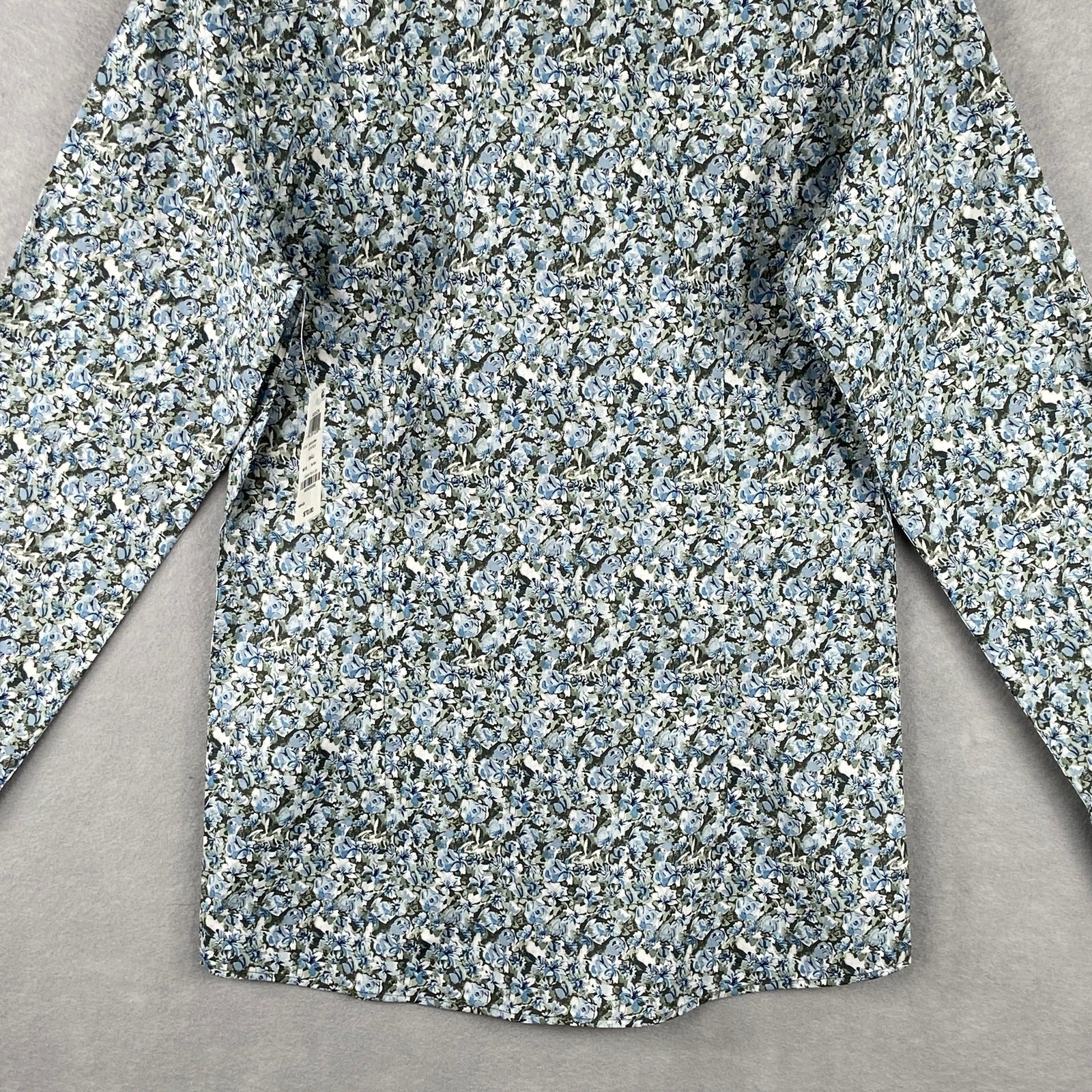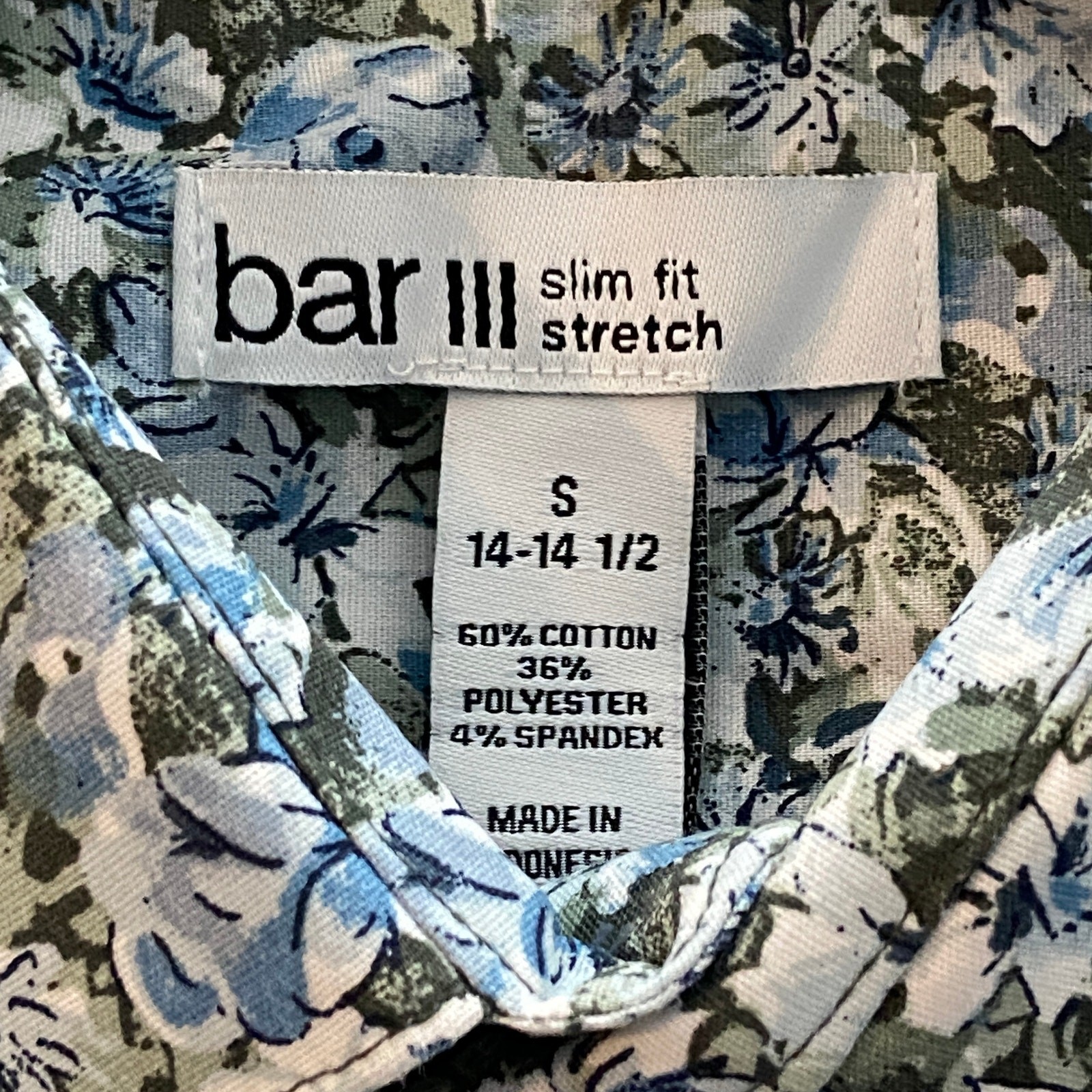 Bar III Dress Shirt Men's Small 14-14.5 Slim Fit Olive-Blue Floral Stretch NEW