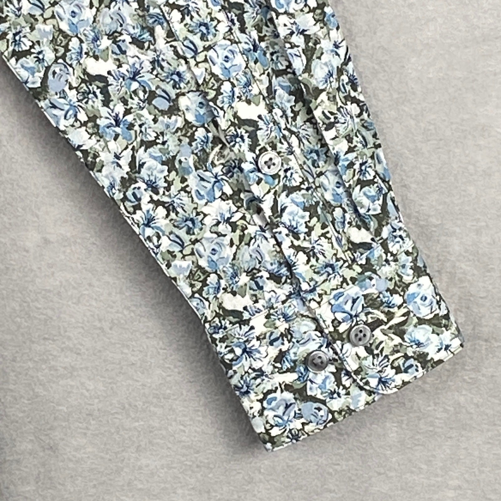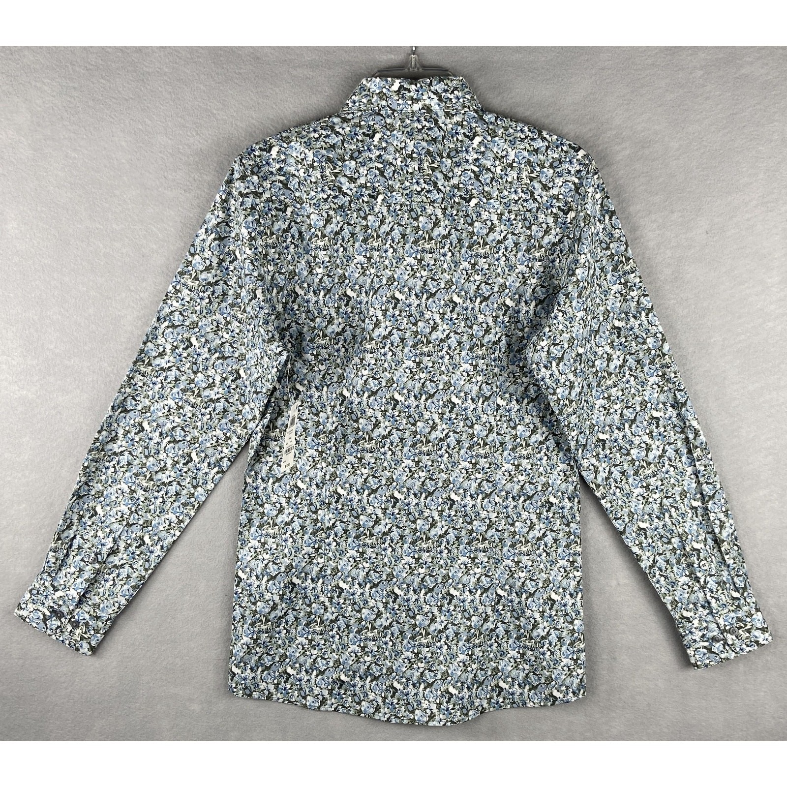 как выглядит Bar III Dress Shirt Mens Small 14-14.5 Slim Fit Olive-Blue Floral Stretch NEW фото