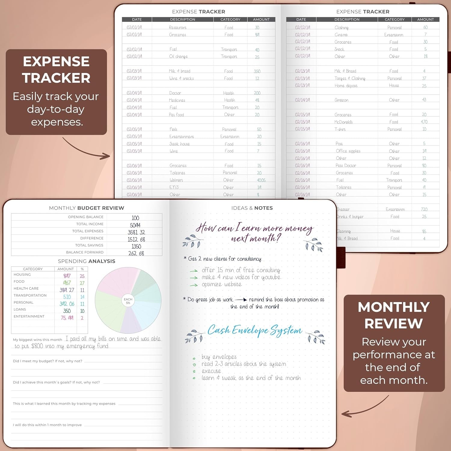 Stylish A5 Finance Planner with Leather Cover - Monthly Budget Tracker Logbook