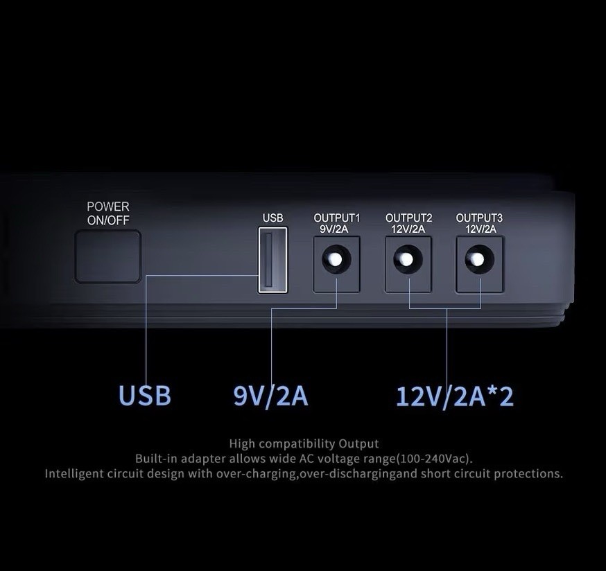 Mini UPS Battery Backup 10400mAh for WiFi Router, Phone, Camera Power Supply