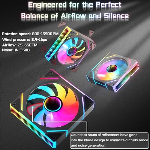 7 Pack ARGB Fans, 4 Forward Fan 3 Reverse Fans Intelligent Temperature