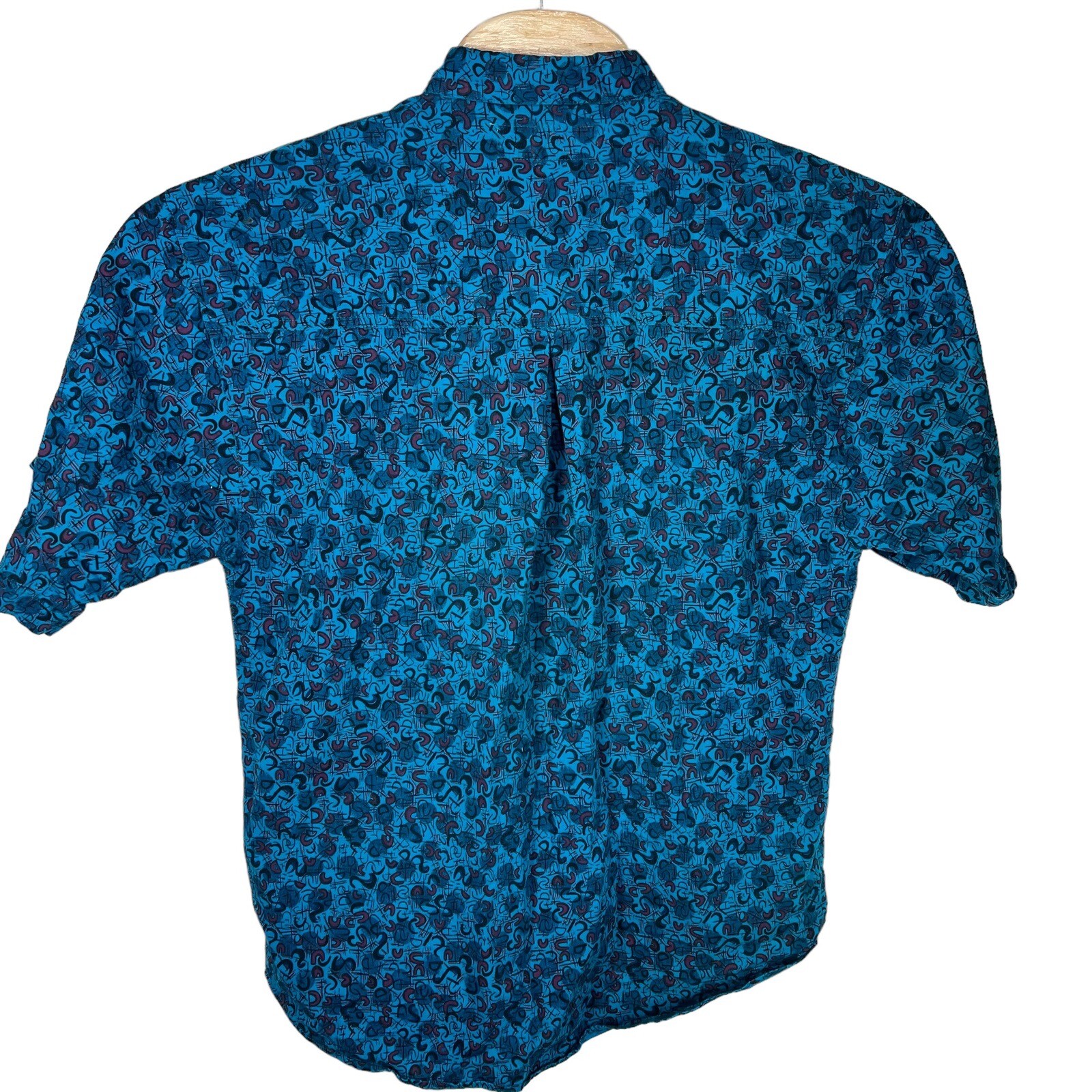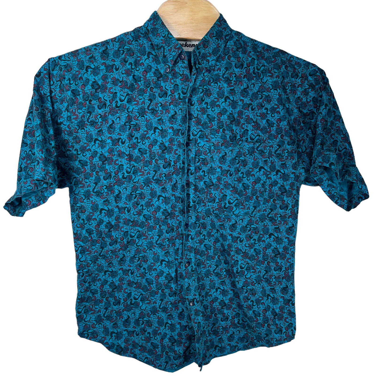 Weekends Men Medium Cotton Green Short Sleeve Button Up Shirt