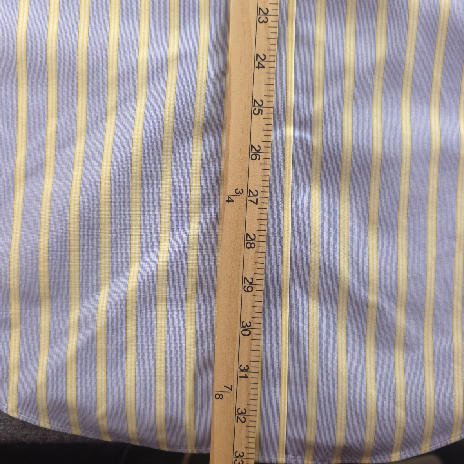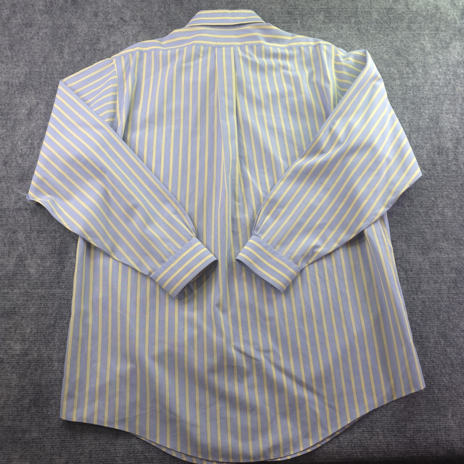 как выглядит Brooks Brothers Dress Shirt 16 33 Non Iron Blue Yellow Striped Button Down фото
