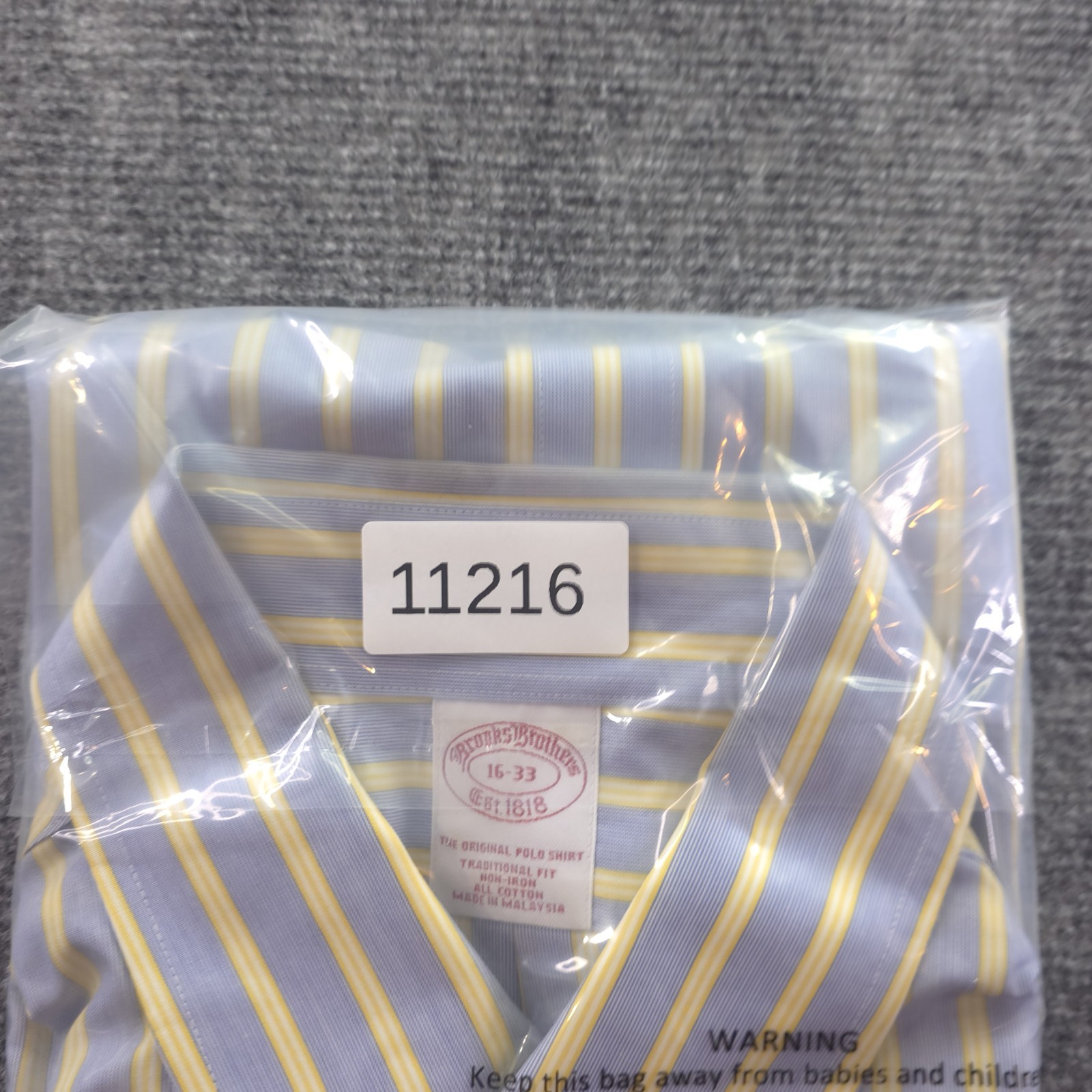 Brooks Brothers Dress Shirt 16 33 Non Iron Blue Yellow Striped Button Down