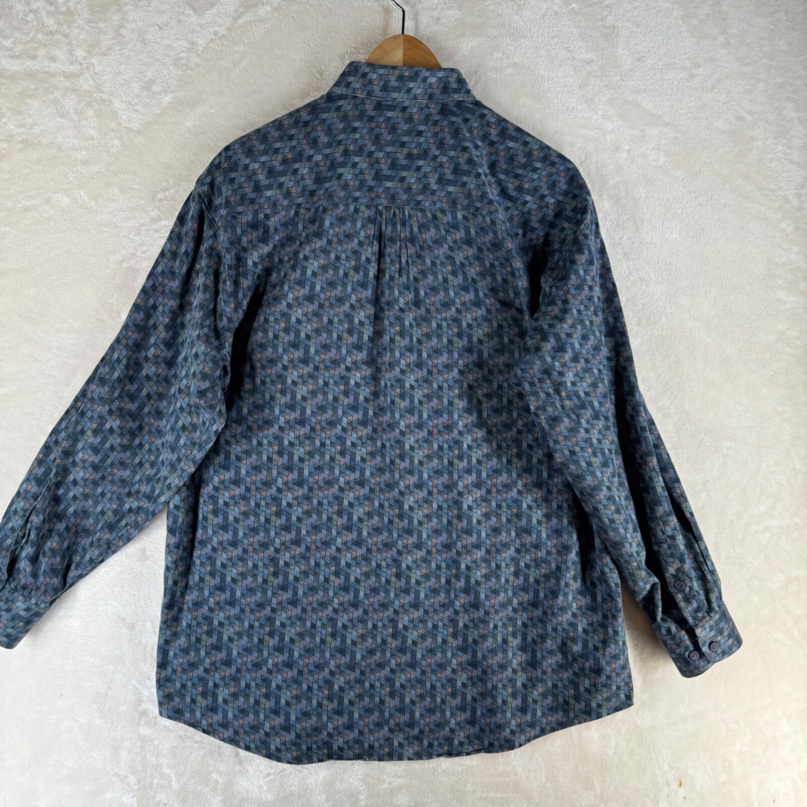 как выглядит Jhane Barnes Mens Size L Blue Geometric Cotton Casual Shirt фото