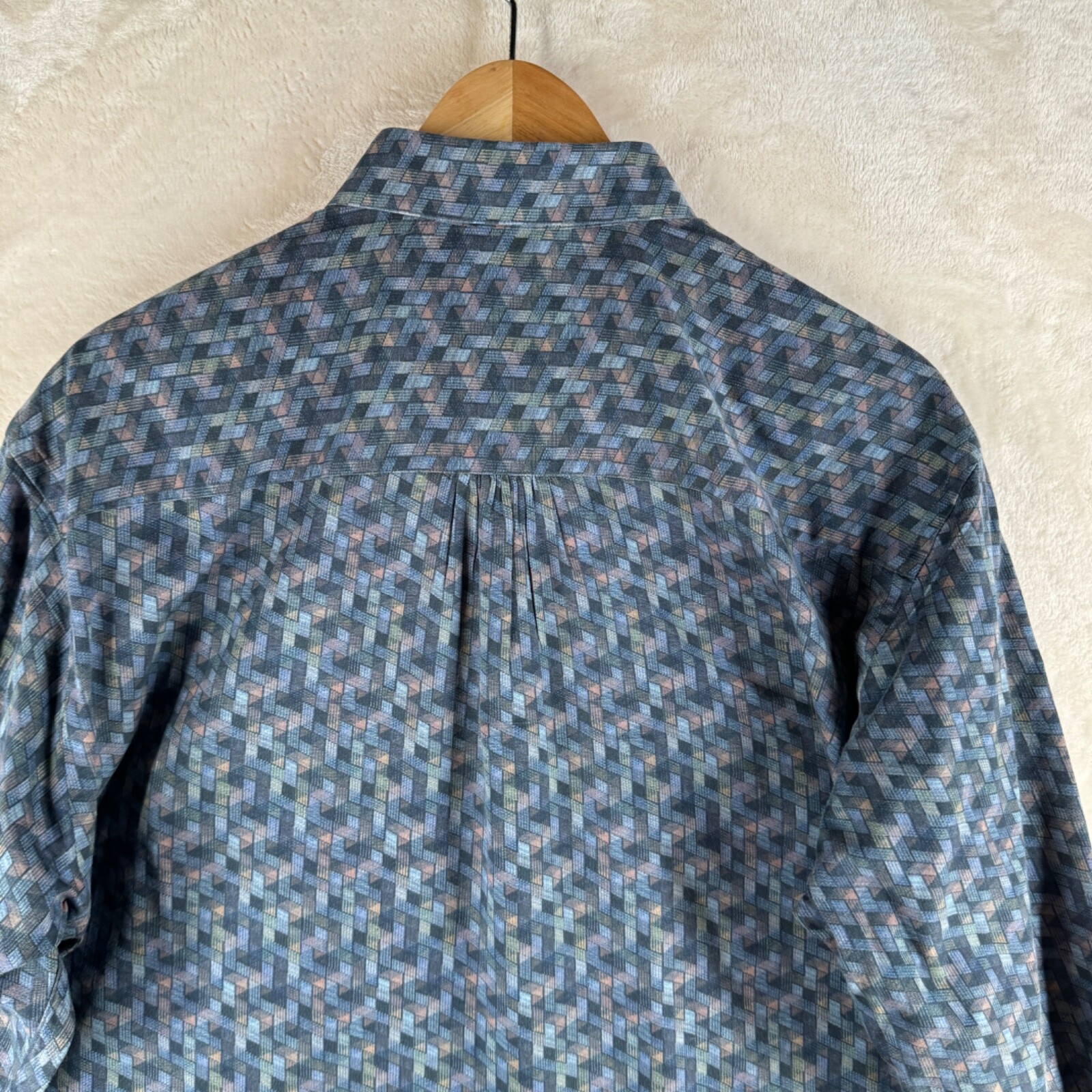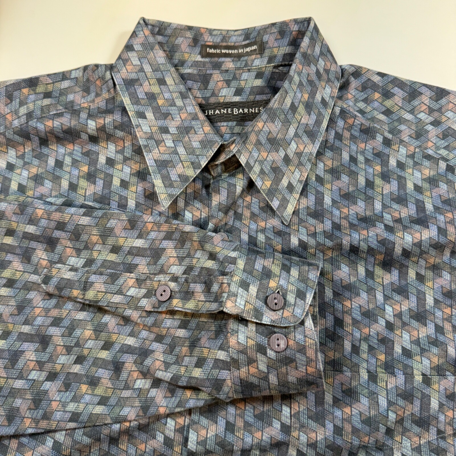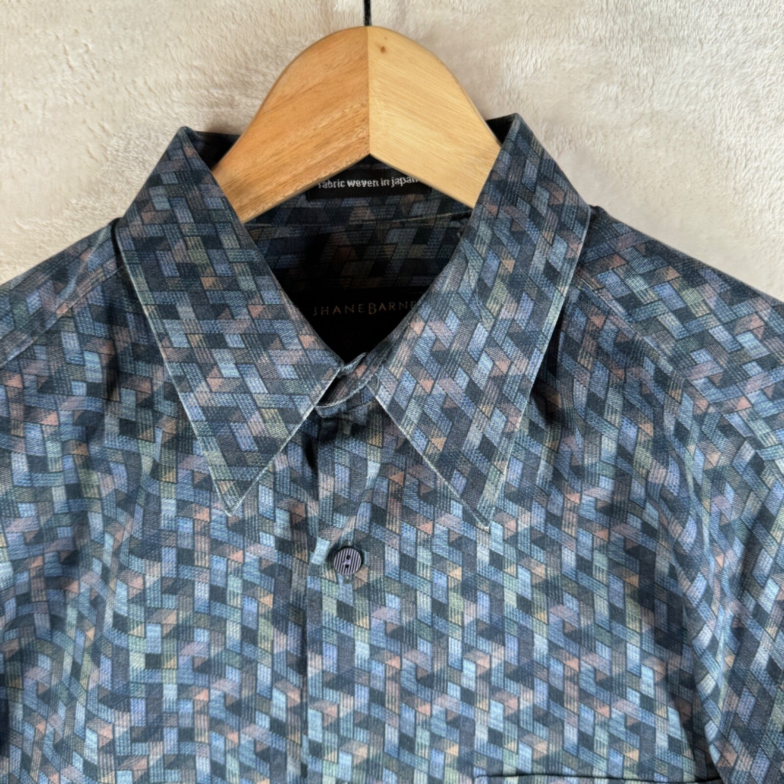 Jhane Barnes Men's Size L Blue Geometric Cotton Casual Shirt