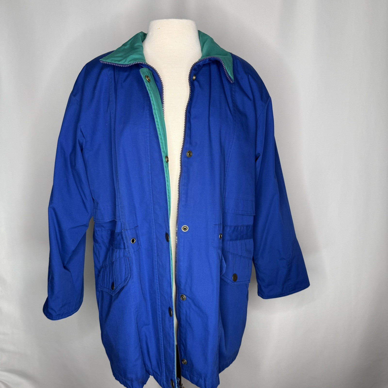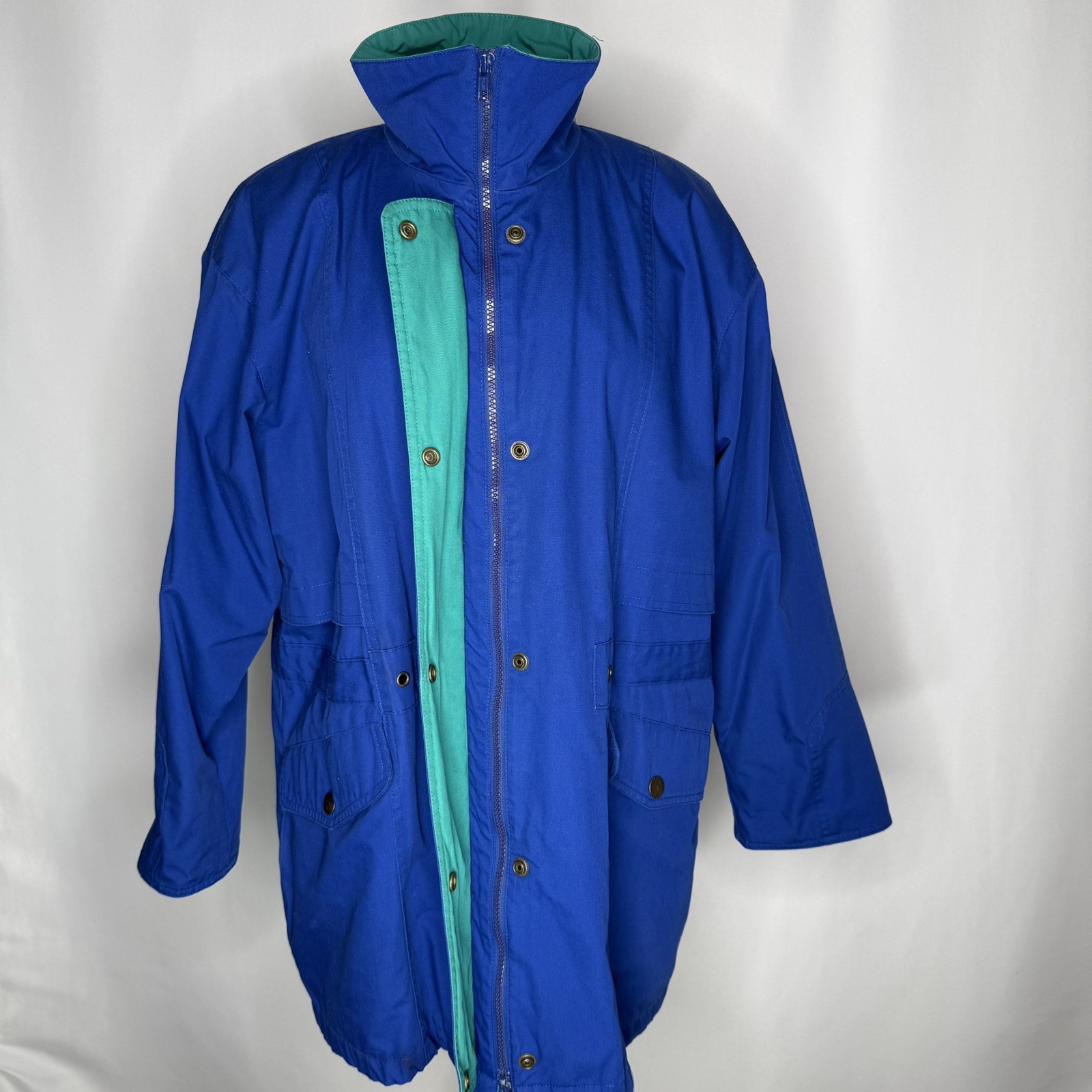 как выглядит Vintage London Fog 90s Blue Green Below Waist Coat Parka Womens Size Medium фото