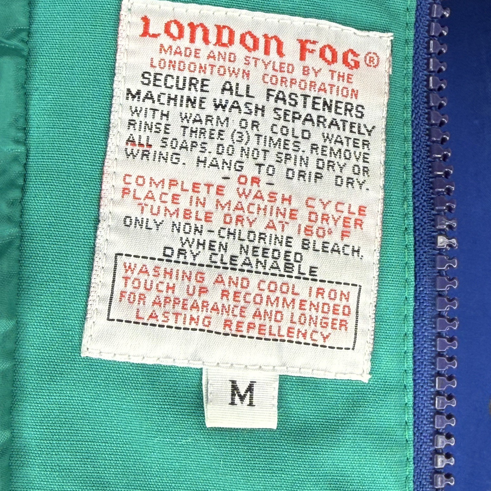 Vintage London Fog 90s Blue Green Below Waist Coat Parka Womens Size Medium
