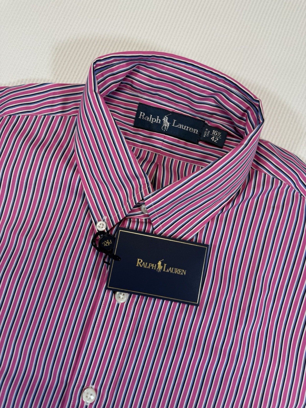 Ralph Lauren Dress Shirt Pink Blue Stripe Button Down Mens 16.5 NWT