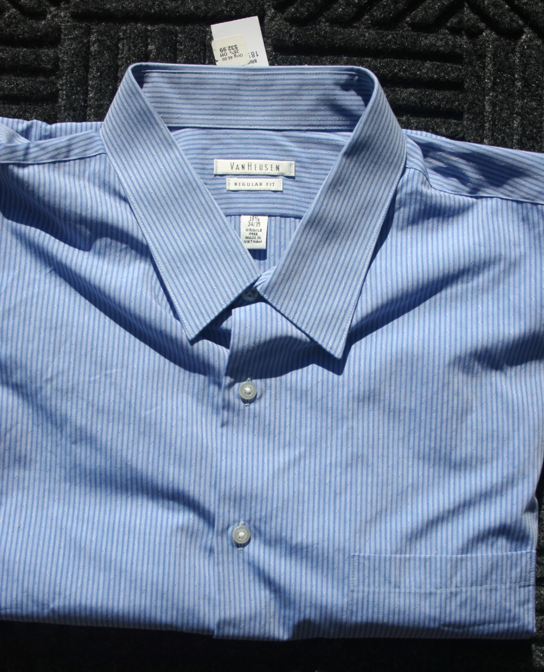 NEW/TAG-VAN HEUSEN 18.5-34/35 REG FIT LONG SLEEVE DRESS SHIRT-BLUE-WRINKLE FREE