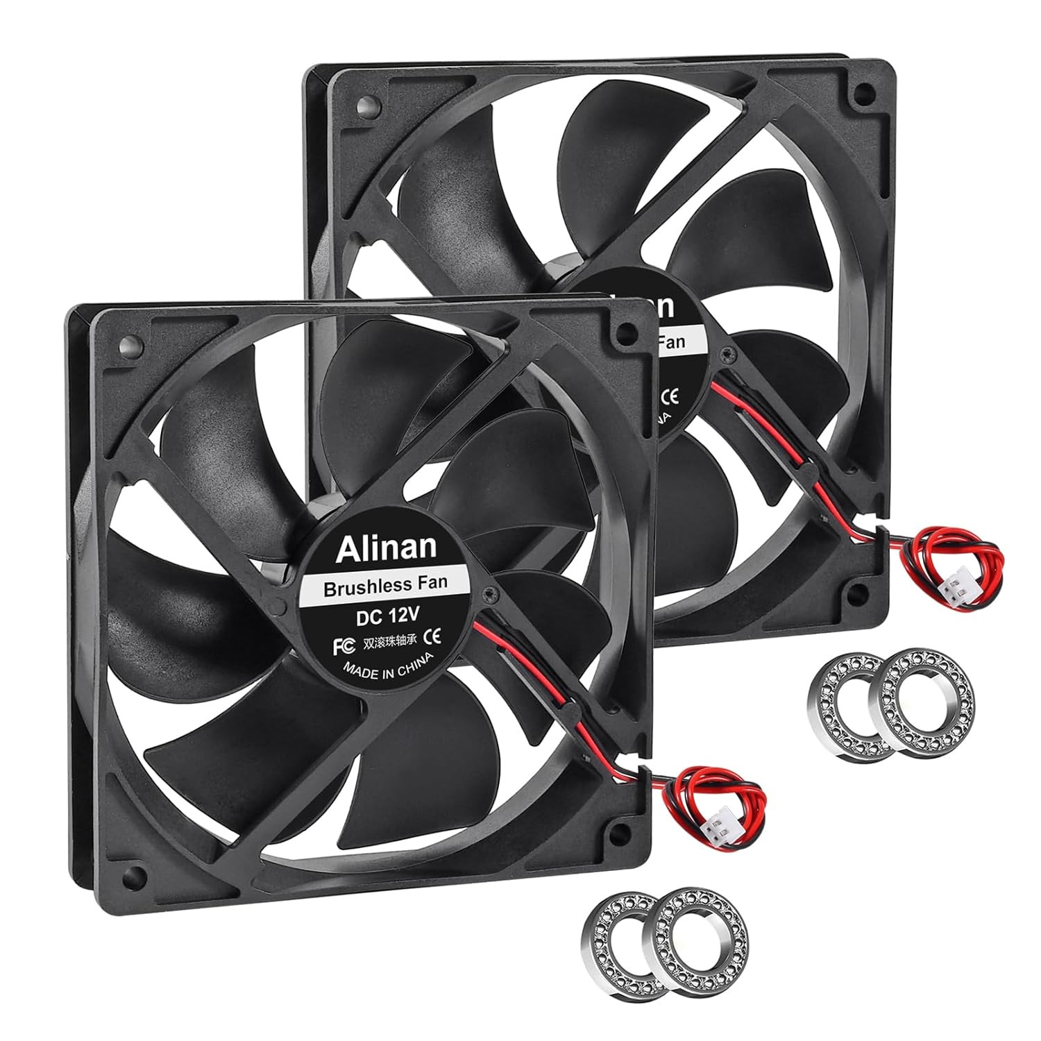 2Pcs 12025 120Mm X 25Mm 12V 5 Inch Dual Ball Bearings Brushless Fan 2Pin DC Cool