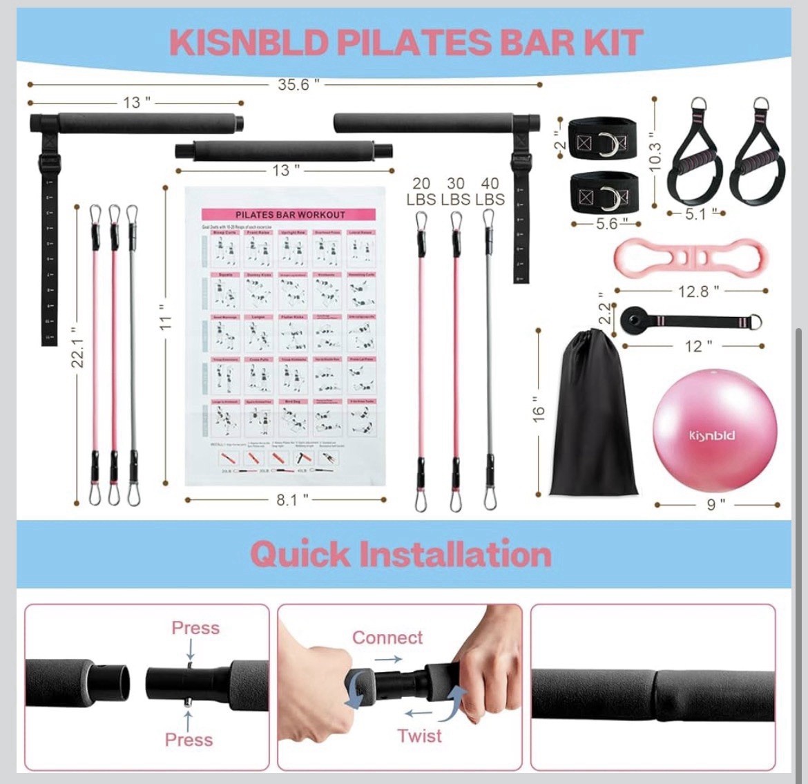 как выглядит Pilates Bar Kit w/Resistance Bands Multifunctional Pilates Bar w/3 Set Exercise фото