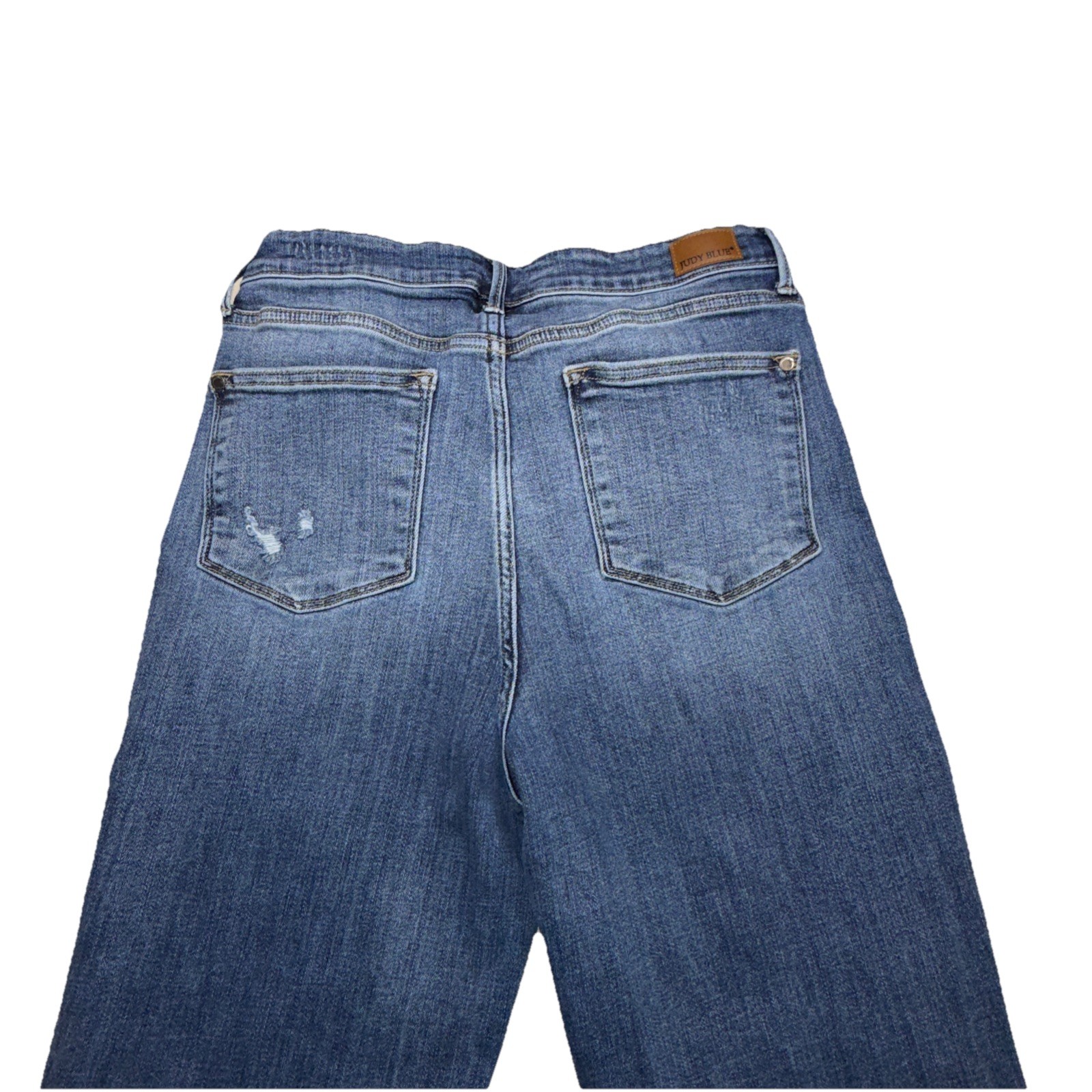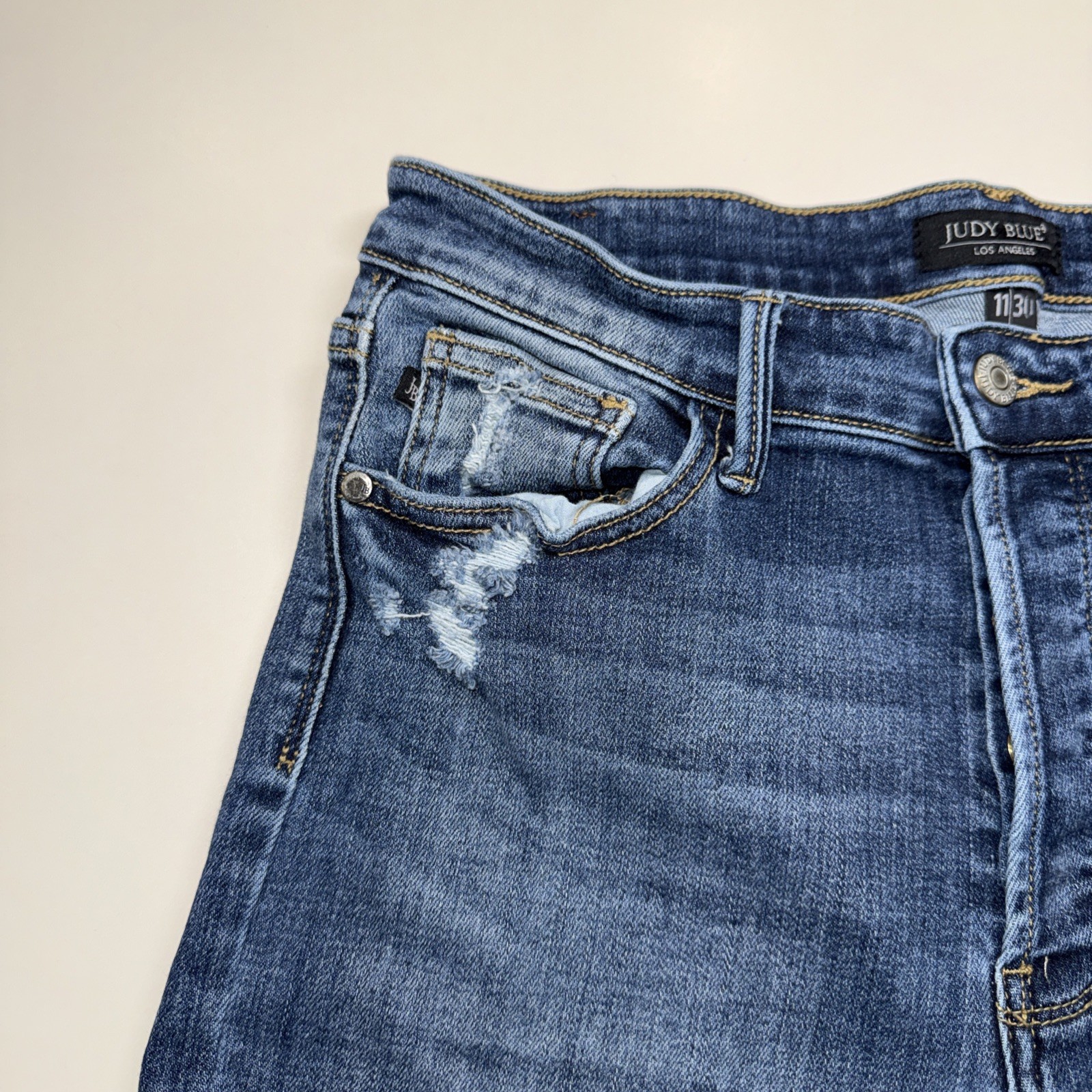 Judy Blue Straight Fit Distressed Raw Hem Stretch Denim Jeans Blue Women 11/30
