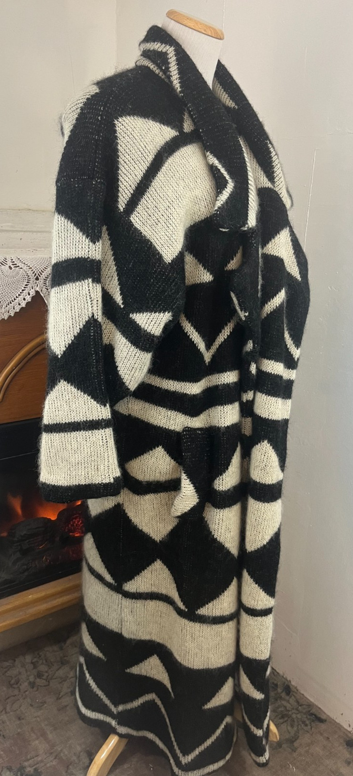 как выглядит I.B. Diffusion Vintage 1980s Black White Mohair Duster/Sweater Coat Side Pkts M фото