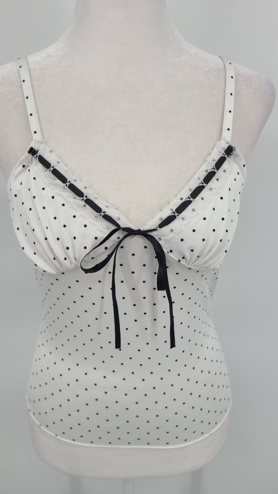 Y2K Fairy Babydoll Crop Women Tank Top Small Polka Dot Ribbon Coquette Madden