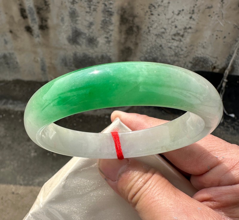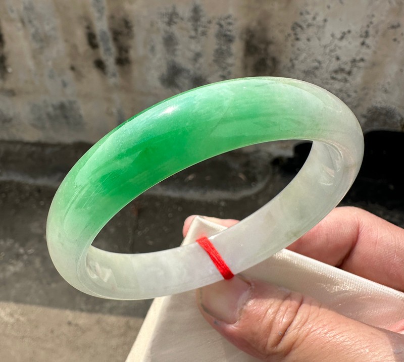 как выглядит Certified Natural Grade AAA Ice Green Burmese Jade jadeite bracelet bangle 64MM фото