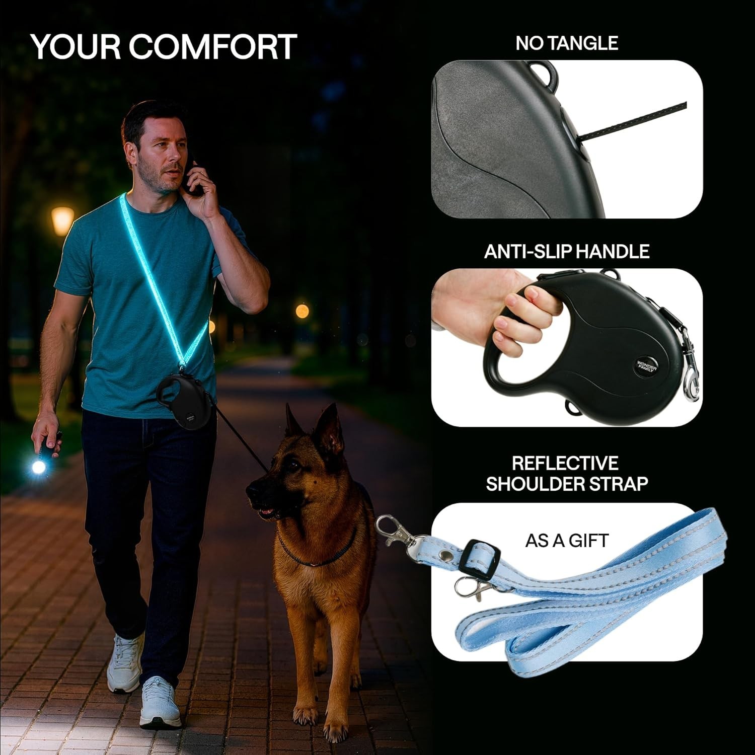 Hands Free Retractable Dog Leash 16ft Heavy Duty M, L Dogs Anti Pull w Bowl