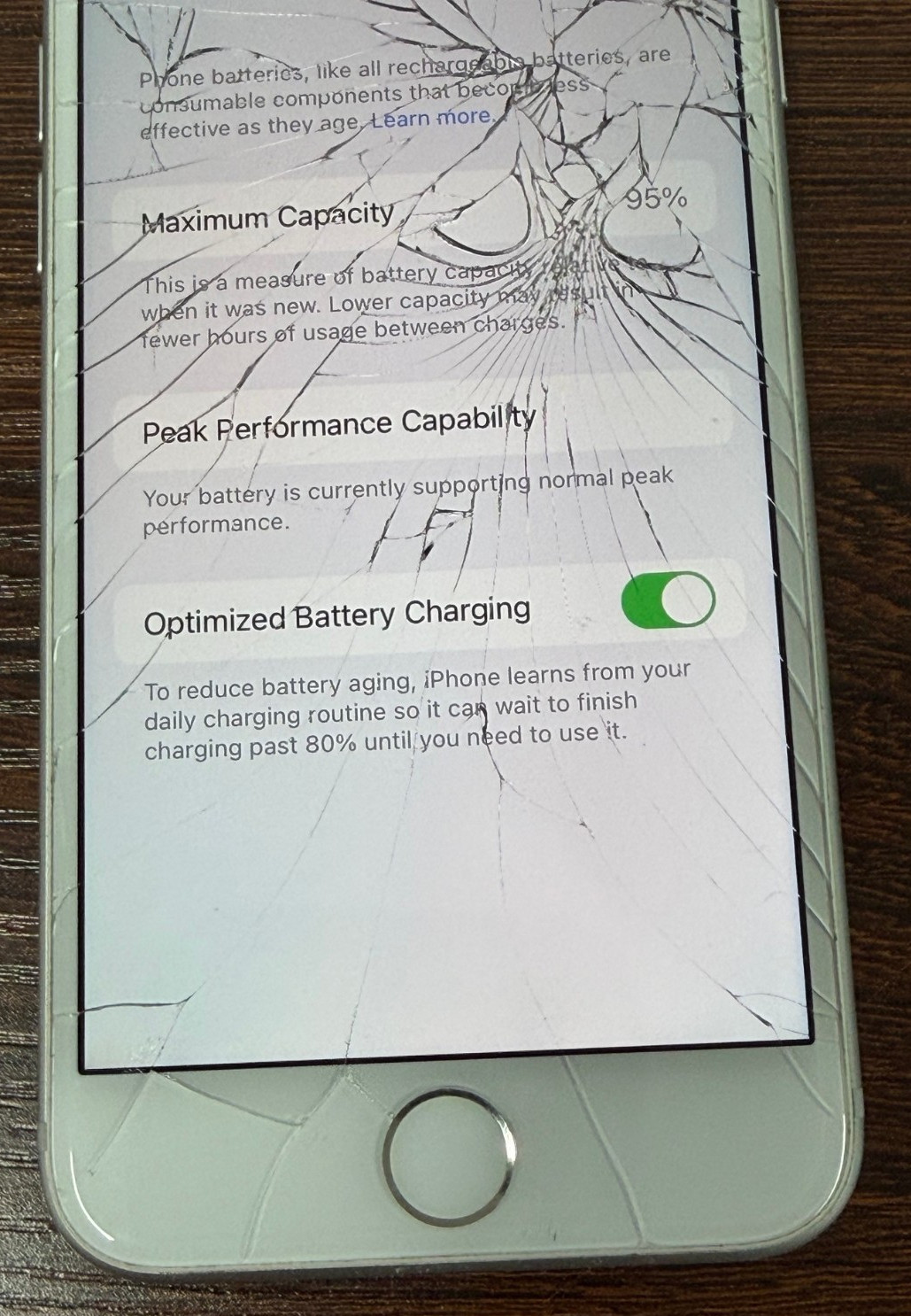 Unlocked Apple iPhone 7 - 32GB Silver White - Crcked Front - Works - 95 Batt
