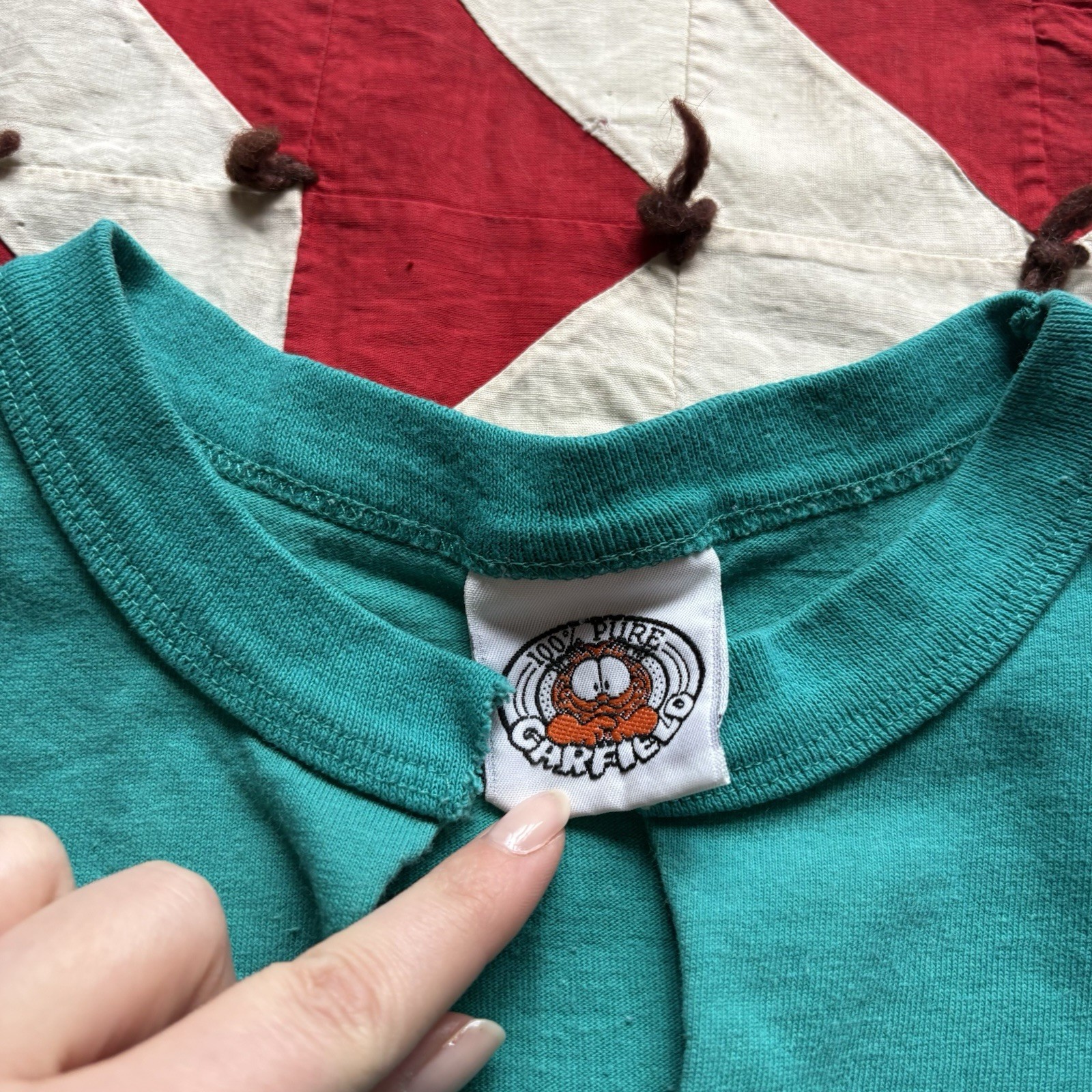 как выглядит Vintage Garfield Sleeping T Shirt As Is Worn Teal 90s Graphic Casual фото