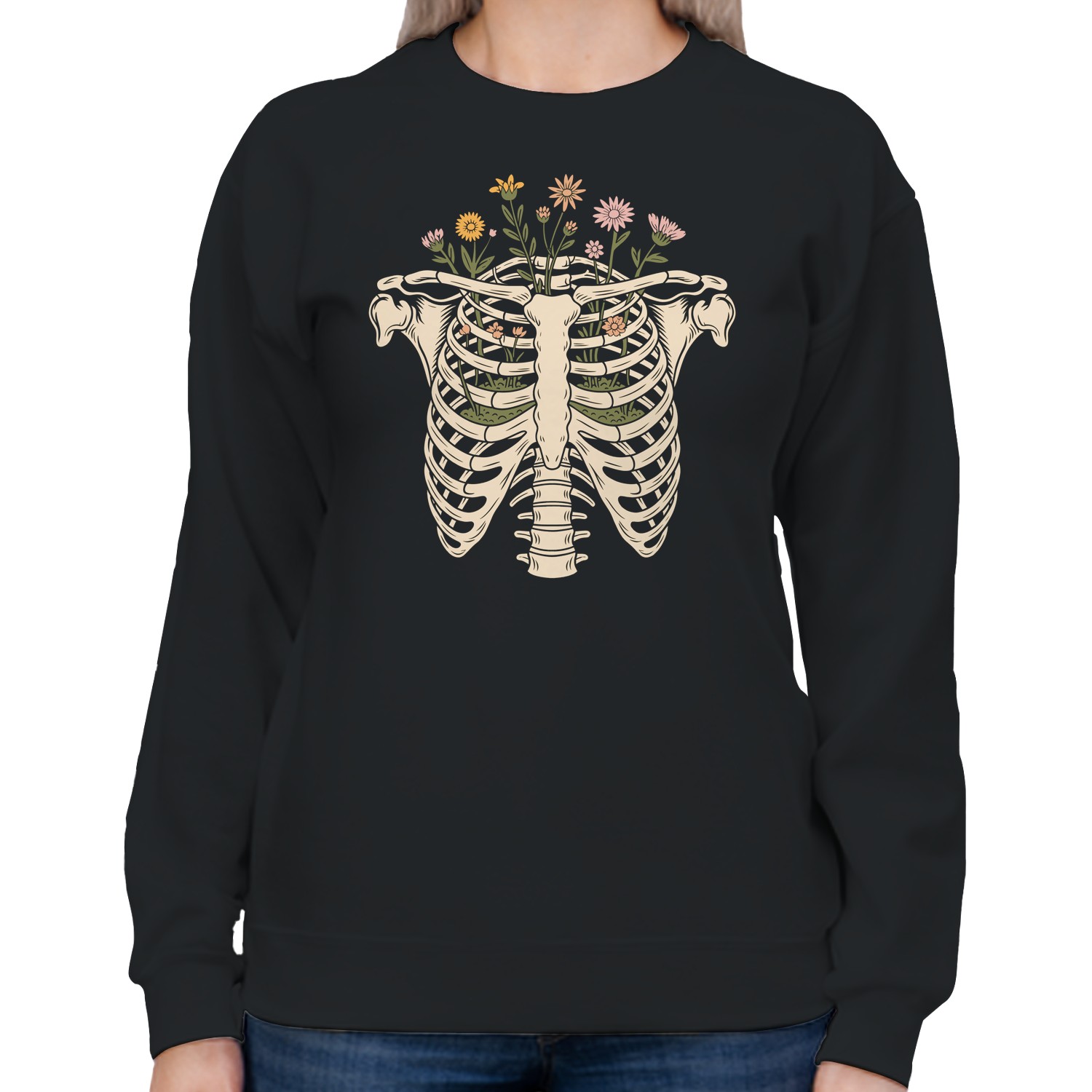 Floral Ribcage Skeleton Art Women's Sweatshirt