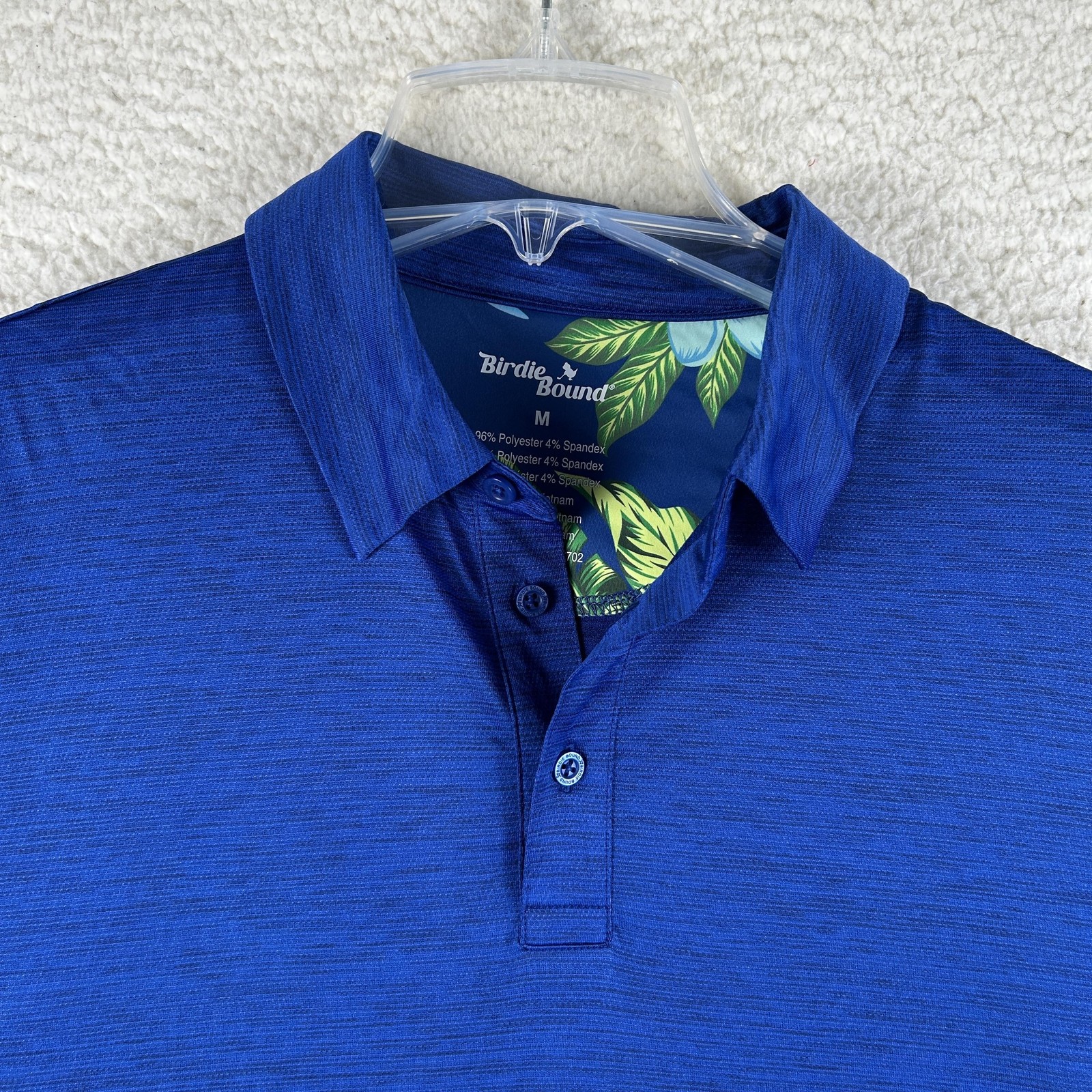как выглядит Birdie Bound Polo Shirt Mens Medium Blue Solid Golf Performance Stretch Logo фото