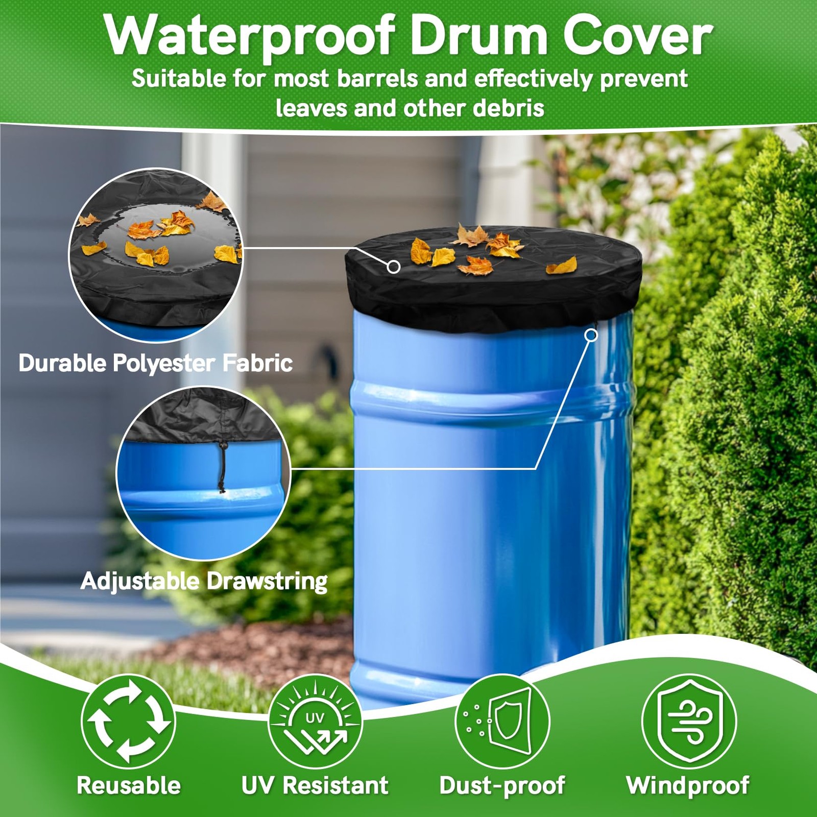 55 Gallon Drum Lid Cover - Water Storage Barrel with 25.5 Inches, Black