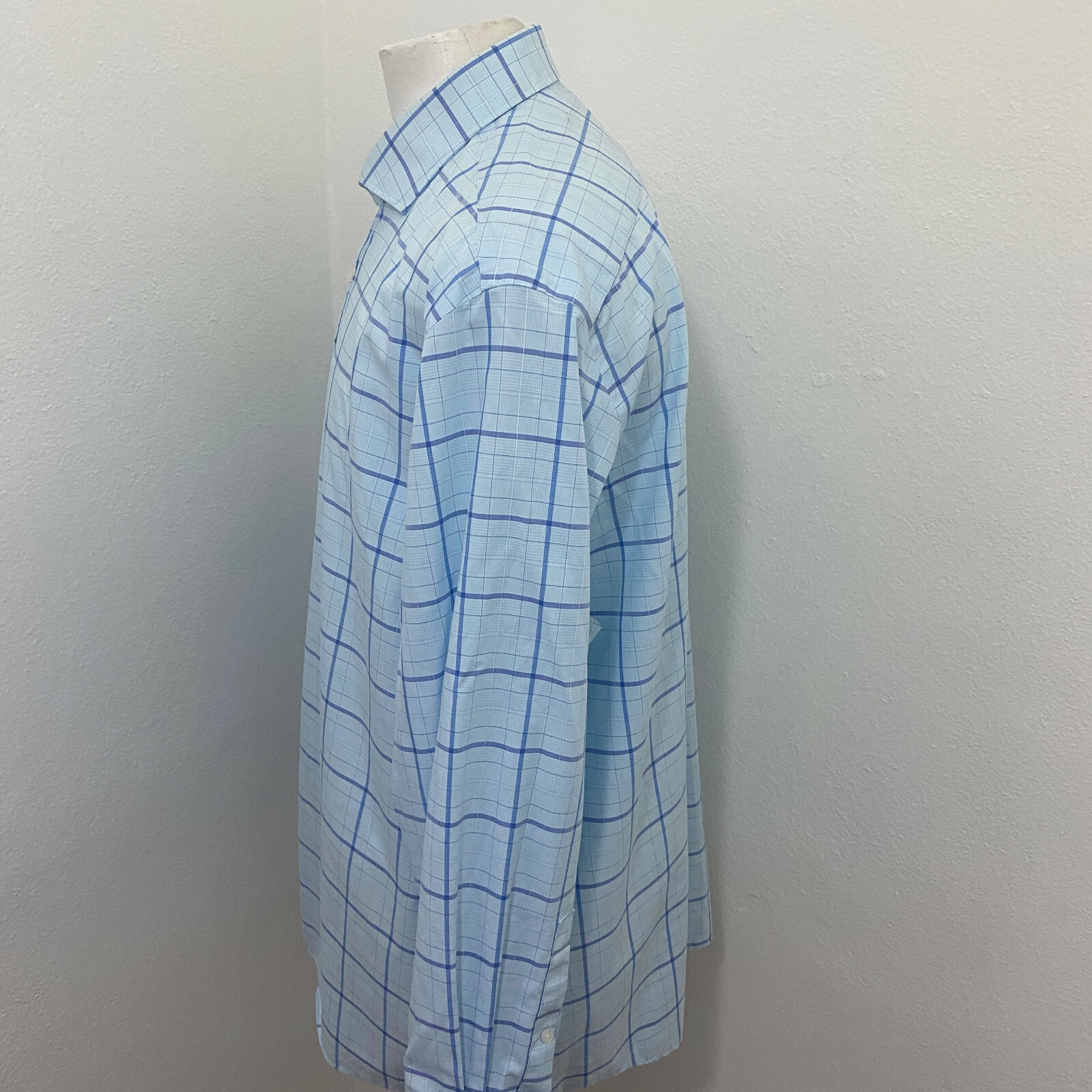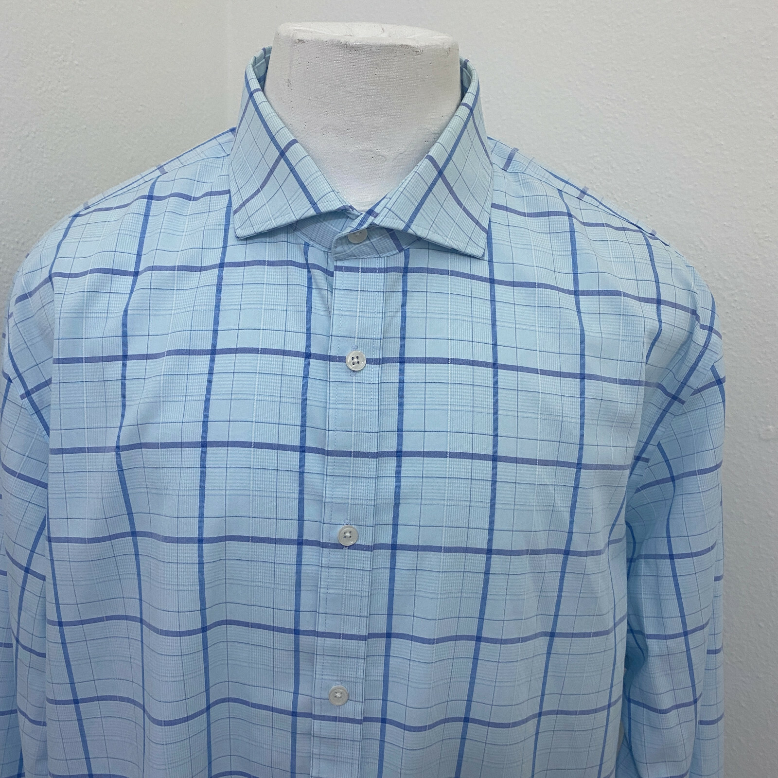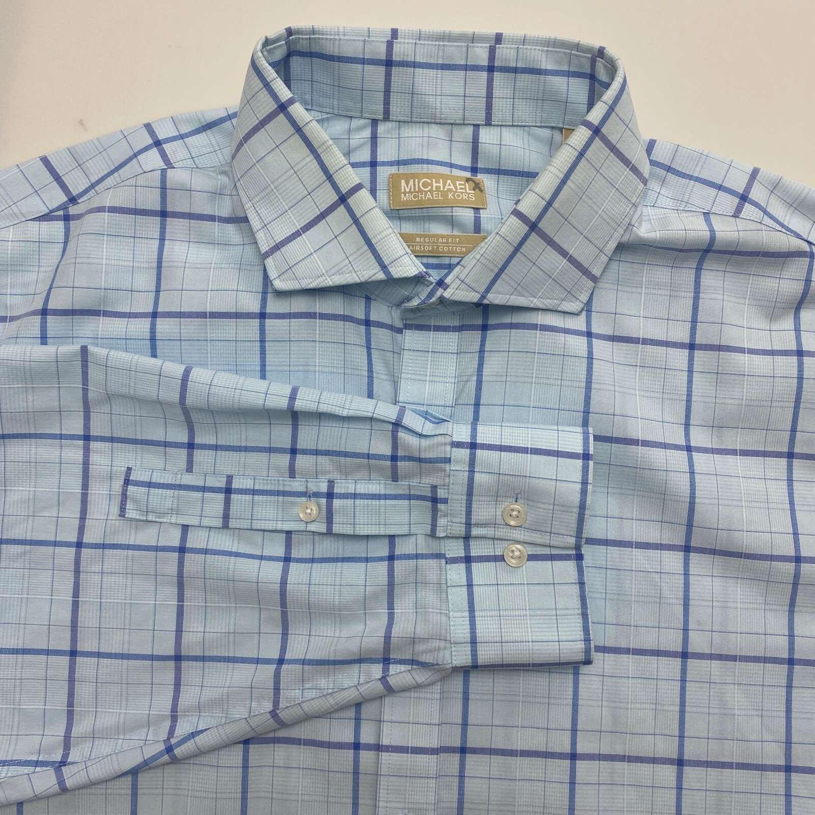 Michael Kors Regular Fit Men Size 18-34/35 Blue Check Airsoft Cotton Dress Shirt