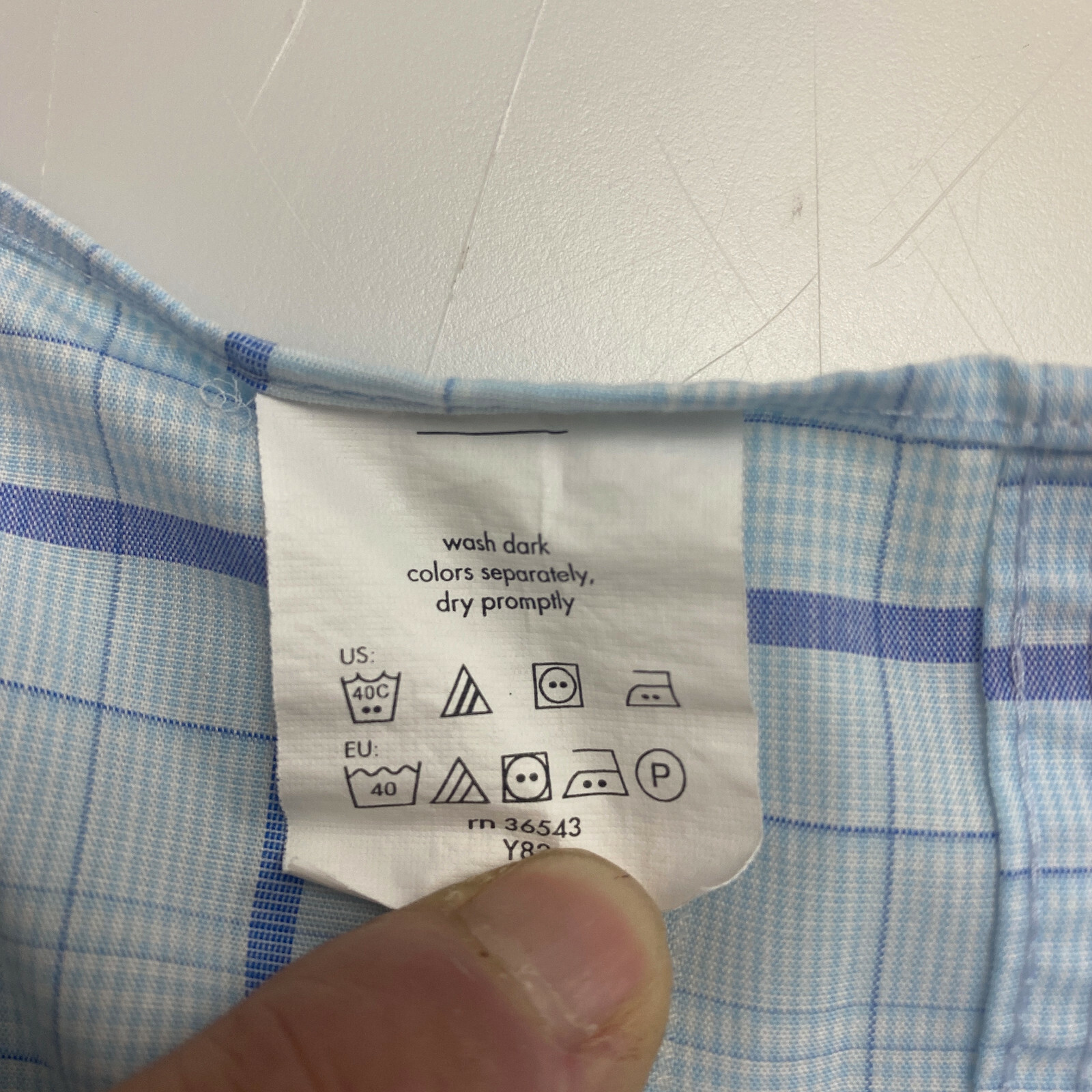 как выглядит Michael Kors Regular Fit Men Size 18-34/35 Blue Check Airsoft Cotton Dress Shirt фото