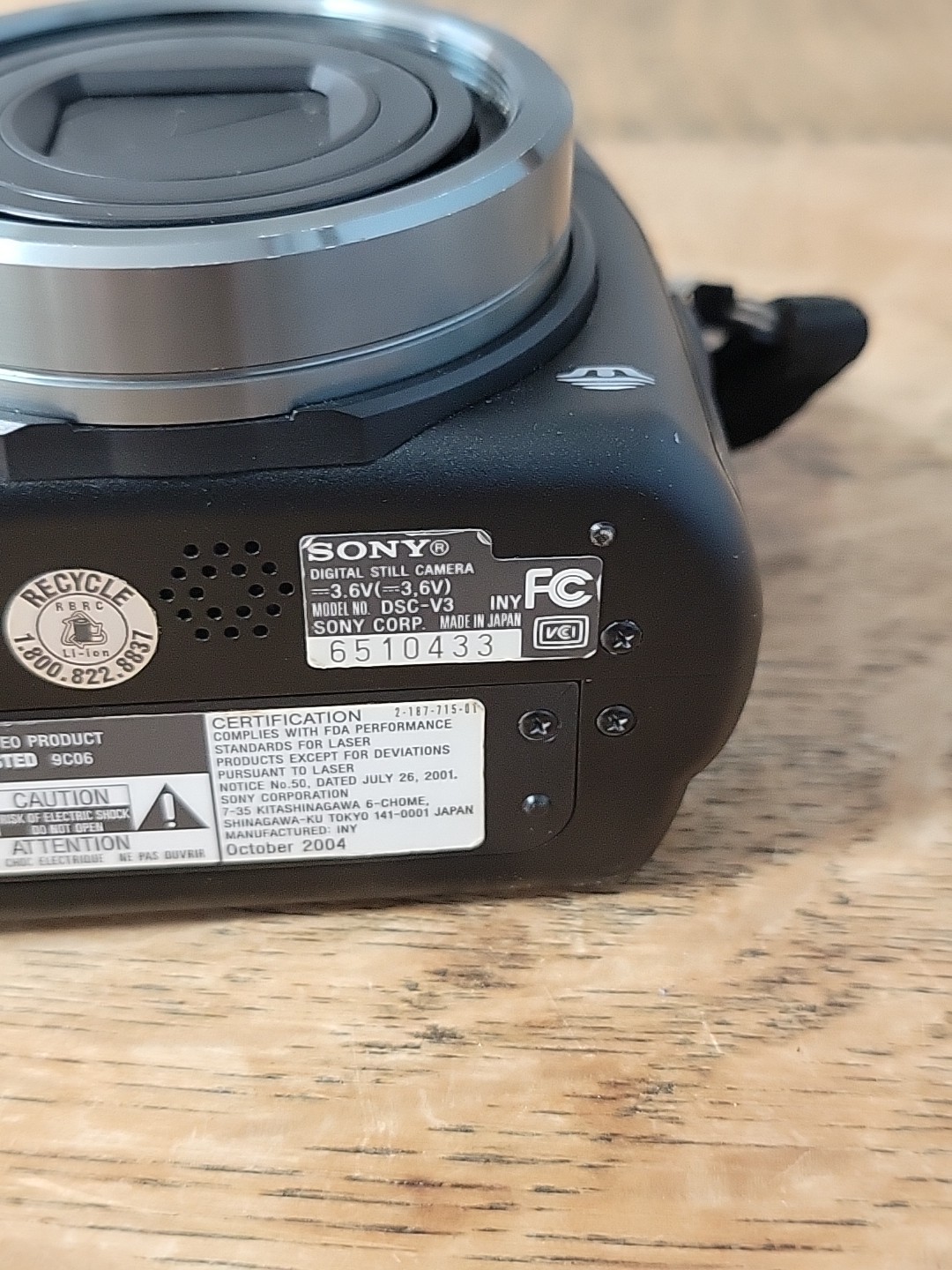 Sony Cyber Shot DSC-V3, 4X Zoom 7.2mp Camera SN:6510433